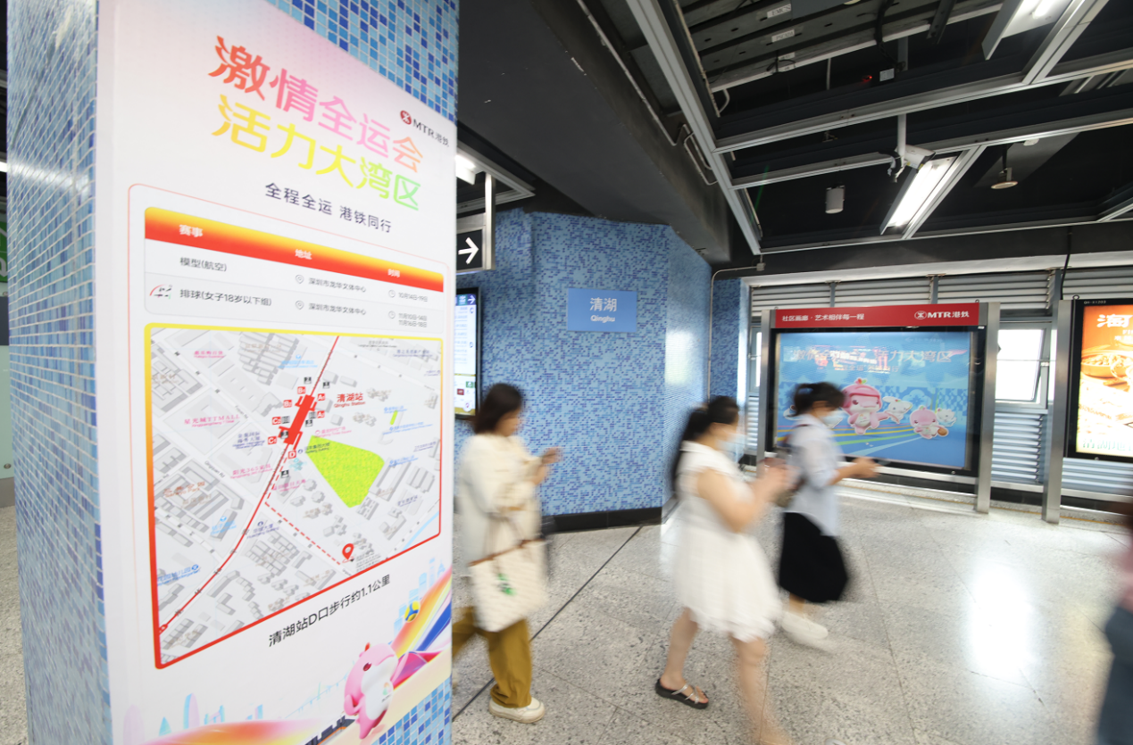 清湖站、后海站增加赛事指引墙贴标识,全线车站均提供赛程资讯、交通指引、旅游折页等,方便乘客及时获取观赛和出行信息。