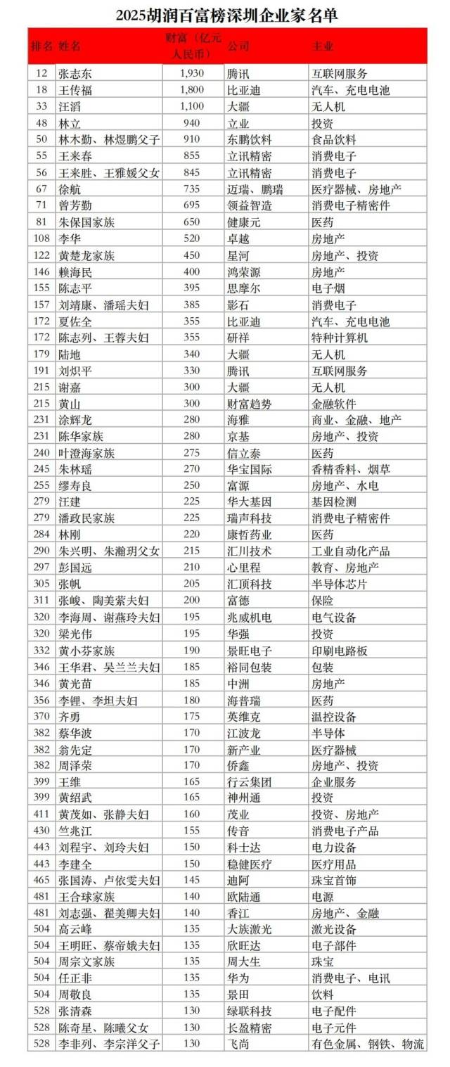 2025胡润百富榜深圳企业家