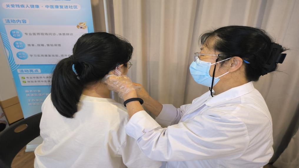 据了解,本次活动旨在发挥中医康复“简、便、验、廉”的特色优势,缓解残疾人群面临的疼痛、功能障碍和康复资源不足等问题,通过专业服务进社区,进一步提升残障人士健康管理水平与生活质量。在活动现场专业医生的指导下,康复理疗师为参与者提供推拿、拔罐、膏贴等中医调理服务,有效疏通经络、促进循环;通过血压与手诊为参与者提供评估,实时跟踪身体反应。现场还开展居家康复技能教学,帮助残疾人及其家属掌握实用康复技巧,增强自我保健能力。