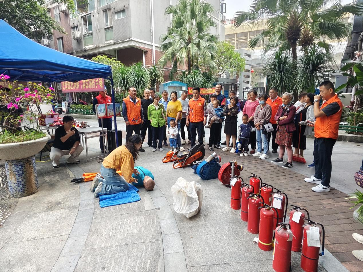 为了使本次消防应急演练活动内容更加丰富,大浪街道消防中队还特意准备了防毒面具、假人,教授居民如何进行自救互救,提高生存率,消防中队成员演示防毒面具的使用方法。接着,工作人员通过讲解心肺复苏的正确方法,并现场演示,让居民更了解自救急救的方法。