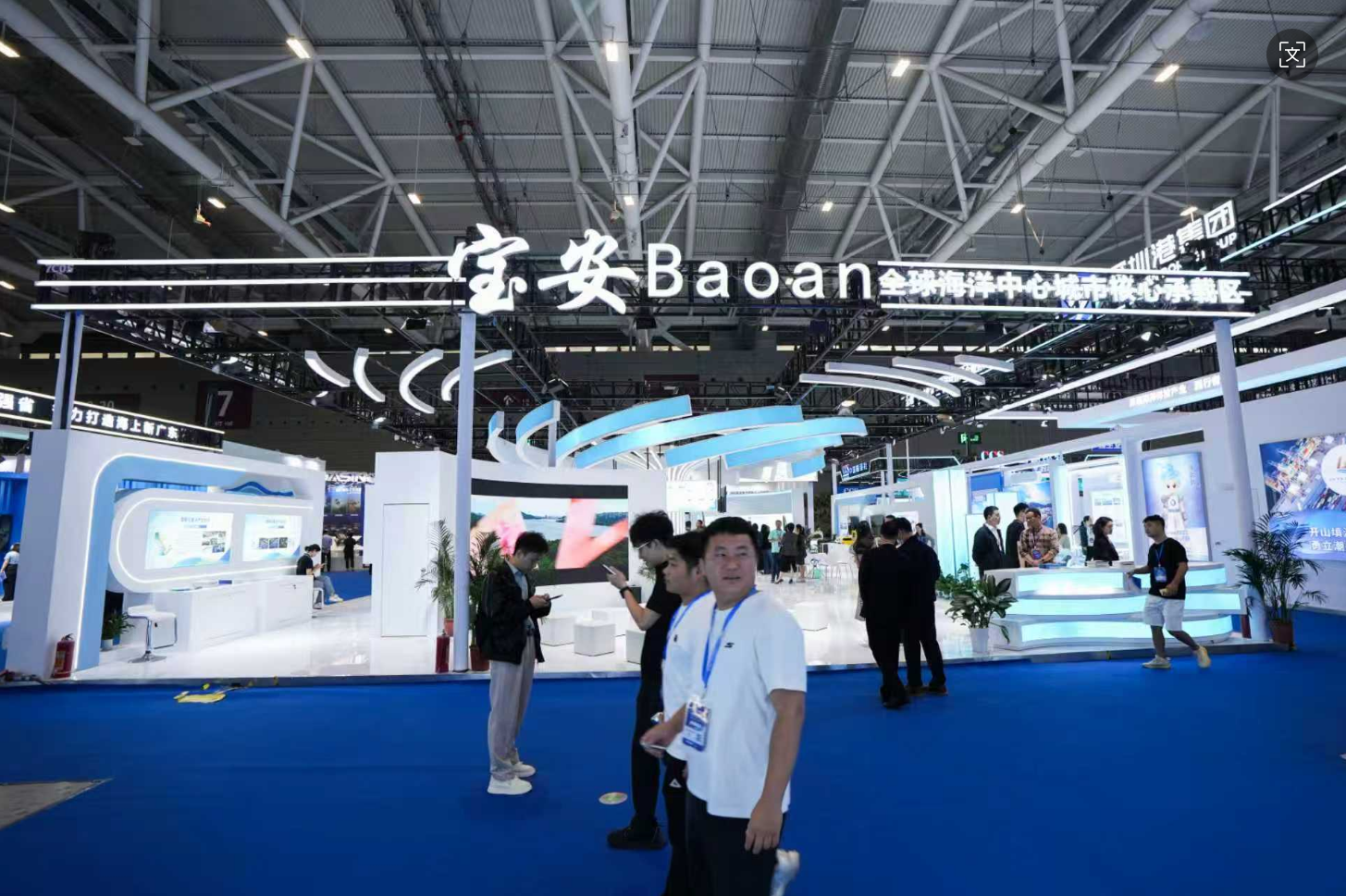 在精心打造的宝安政府展厅内,除了为企业搭建亮相的舞台,也循环播放着宝安的招商推介与海洋新城规划视频,配以详实的展板系统,向全球客商清晰勾勒出宝安海洋产业的发展脉络、优越的产业空间载体(如海洋新城、大铲湾片区)以及雄厚的科研与服务支撑平台(如中国海洋大学深圳研究院、海洋新城开放水域测试场等)。这不仅是宝安海洋产业政策的宣介窗口,更是区域海洋经济综合实力的集中体现。