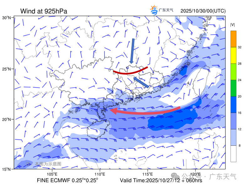 10月30日西北部先有弱冷空气渗透、粤西仍存在偏东气流上岸,上述地区会有分散小雨。
