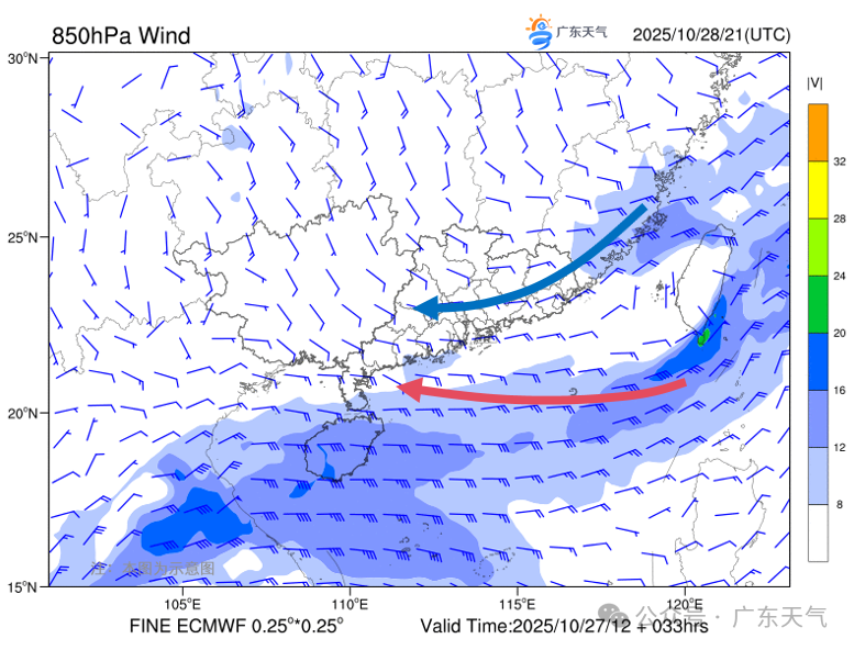 10月30日西北部先有弱冷空气渗透、粤西仍存在偏东气流上岸,上述地区会有分散小雨。