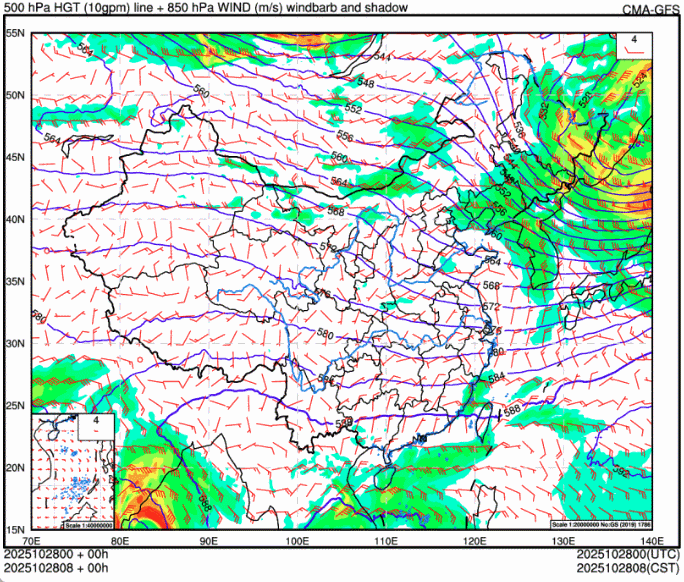 ↑ 看未来十天的形势场图,等压线相对平滑,除东北地区一带,没有太大的起伏,表明冷空气实力一般,且主要在北方活动。