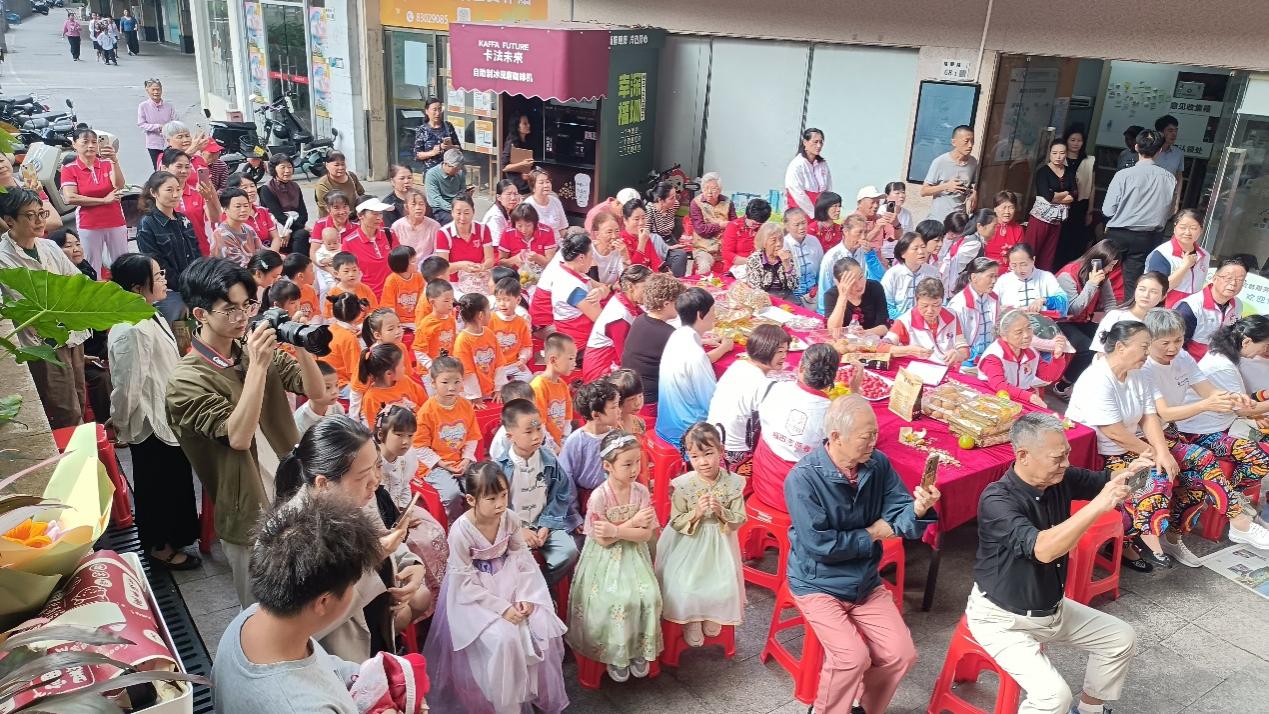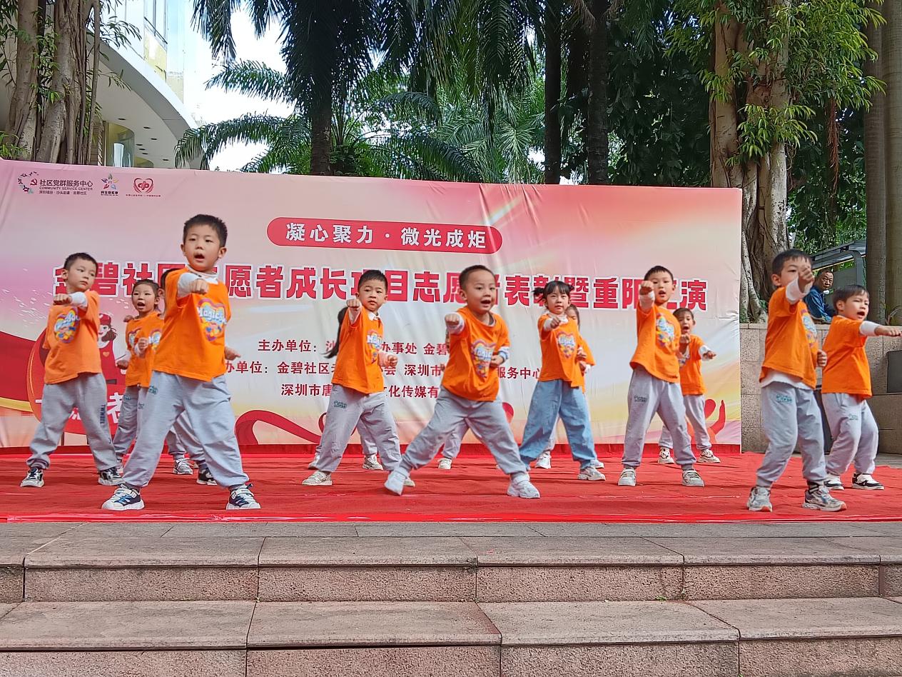 文艺汇演环节精彩纷呈,由社区各文艺团队带来的佳木斯操、非洲鼓表演、太极扇等节目轮番上演,展现了社区居民积极向上的精神风貌。本次活动还特别邀请了福田益强附属幼儿园和福港艺林学校的师生参与。孩子们表演的舞蹈《中华孝道》和武术操《中华武术》充满童真活力,赢得了现场阵阵掌声,更传递了孝亲敬老的中华优秀传统文化。