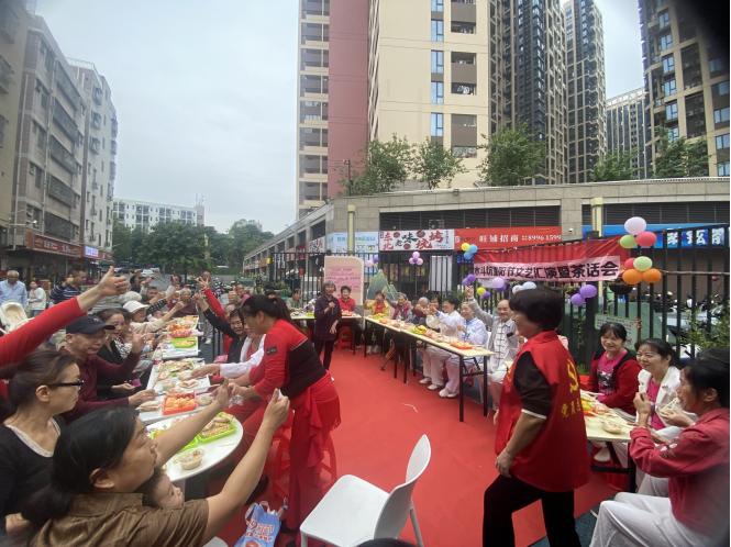 10月28日下午,社区水斗坑党群服务站还举行了重阳节文艺汇演暨茶话会。老人们与志愿者欢聚一堂,表演精心编排的节目,围坐一起品尝茶点,共叙邻里情。