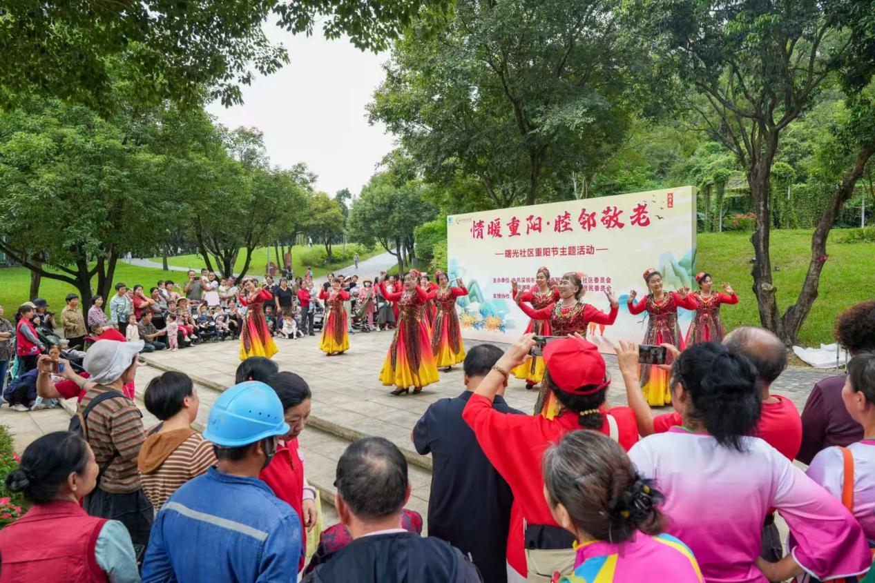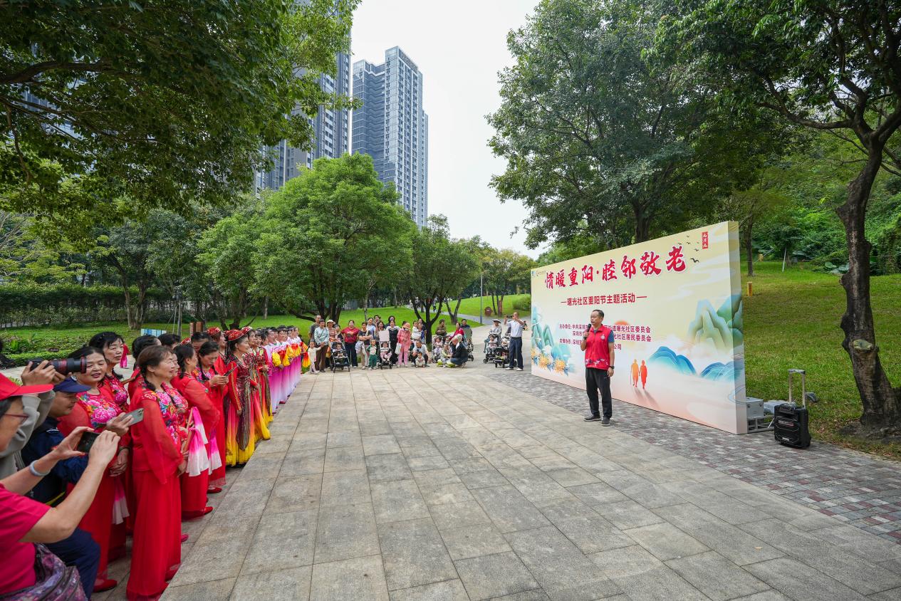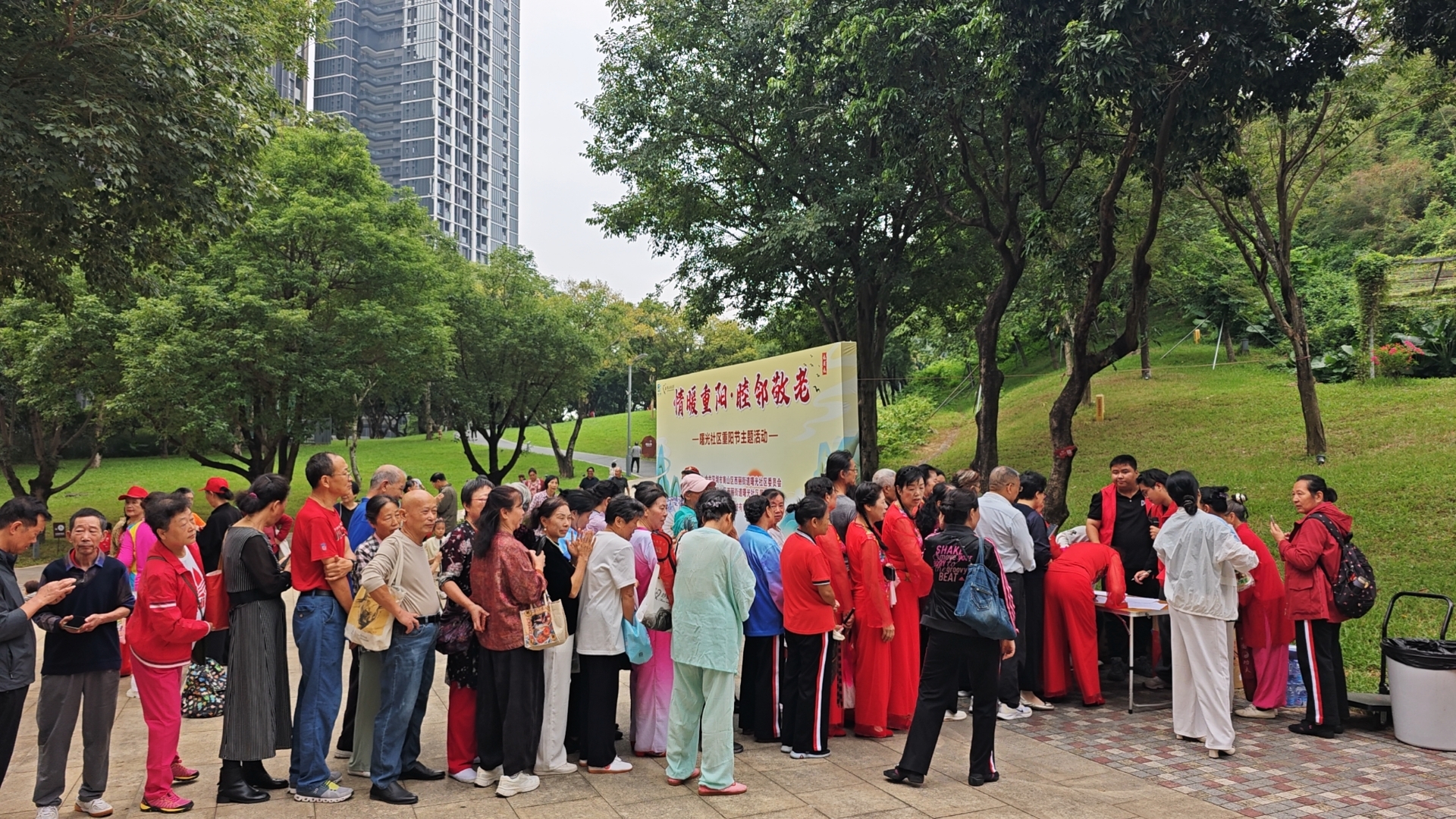 重阳佳节至,敬老正当时。10月29日上午,南山区西丽街道曙光社区在西丽生态公园举办“情暖重阳·睦邻敬老”主题登山活动,邀请百名社区长者共赴金秋之约,共同迎接重阳佳节和第36个“中国老人节”,以丰富多彩的活动内容传递尊老敬老之情,弘扬中华民族传统美德。