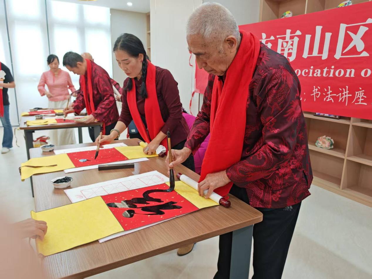 下山后,长者们移步至社区党群服务中心。书法协会的老师们现场挥毫,为长者们书写“福”、“寿”等祝福字幅。笔墨飘香中,一幅幅饱含深情的作品传递着对长者的美好祝愿。与此同时,备受期待的积分游戏赛也在火热进行中。长者们踊跃参与趣味游戏,通过累积积分赢取特色奖励,现场欢声笑语不绝于耳。