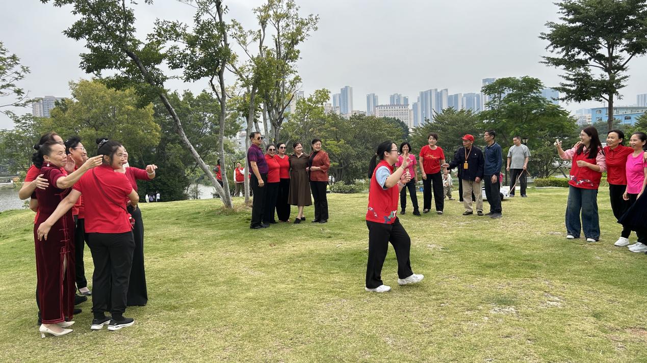 10月28日,在重阳节来临之际,宝安区沙井街道沙头社区党群服务中心社工在定岗湖公园开展了一场“登高辞青韵,趣味乐耆年”沙头社区老年人重阳登高活动。活动吸引了众多社区老年朋友们踊跃参与,老人们在欢声笑语中共度重阳佳节,感受节日的温馨与快乐。