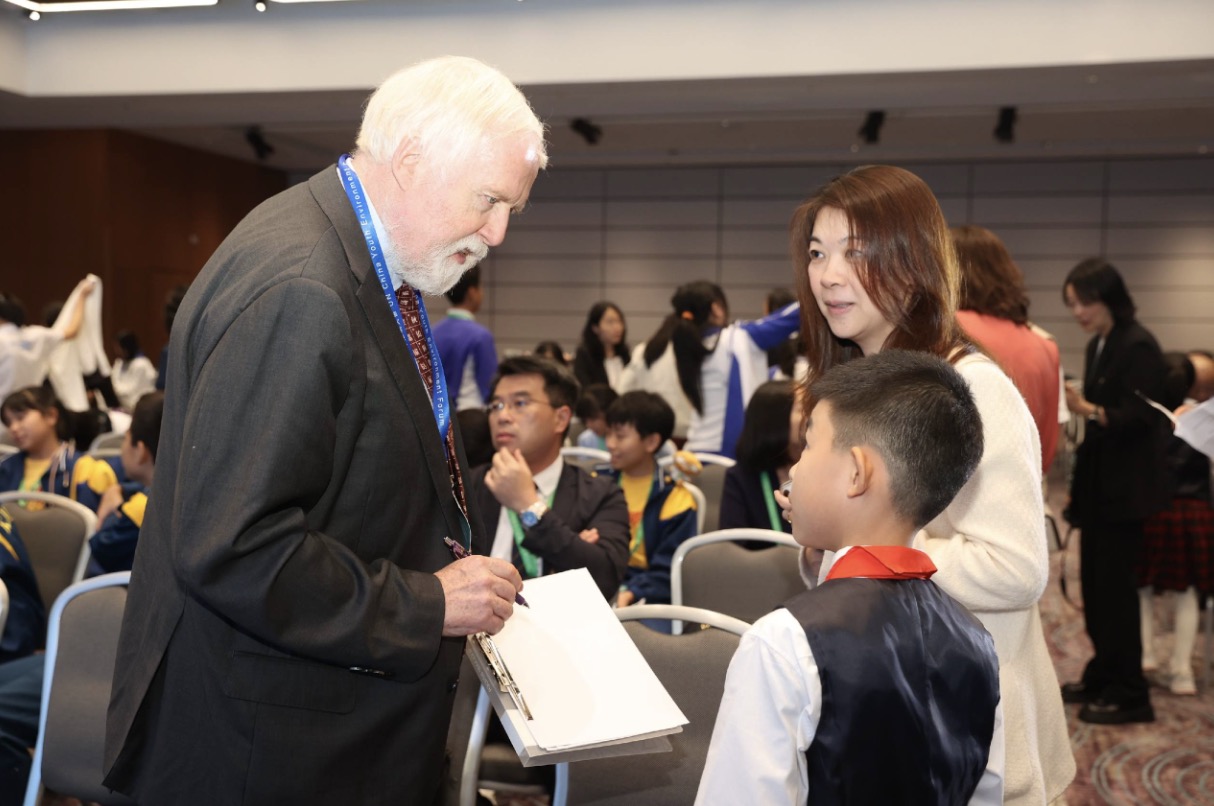 在專題報告環節,清華大學氣候變化與可持續發展研究院副院長張健,英國皇家化學會會士、友誼獎得主戴偉教授(Professor David G. Evans)分別作了主旨報告和專題分享,為與會者帶來前沿的科學視角與啟發。另外,來自北京第二實驗小學、深圳市龍崗外國語學校、澳門培正中學、香港浸會大學附屬學校王錦輝中小學及香港墨爾文國際學校的學生代表分享了他們在環保領域的實踐故事;深圳實驗學校、北京一零一中學及香港浸會大學附屬學校王錦輝中小學的校領導則交流了各校在綠色低碳教育方面的經驗與成果。