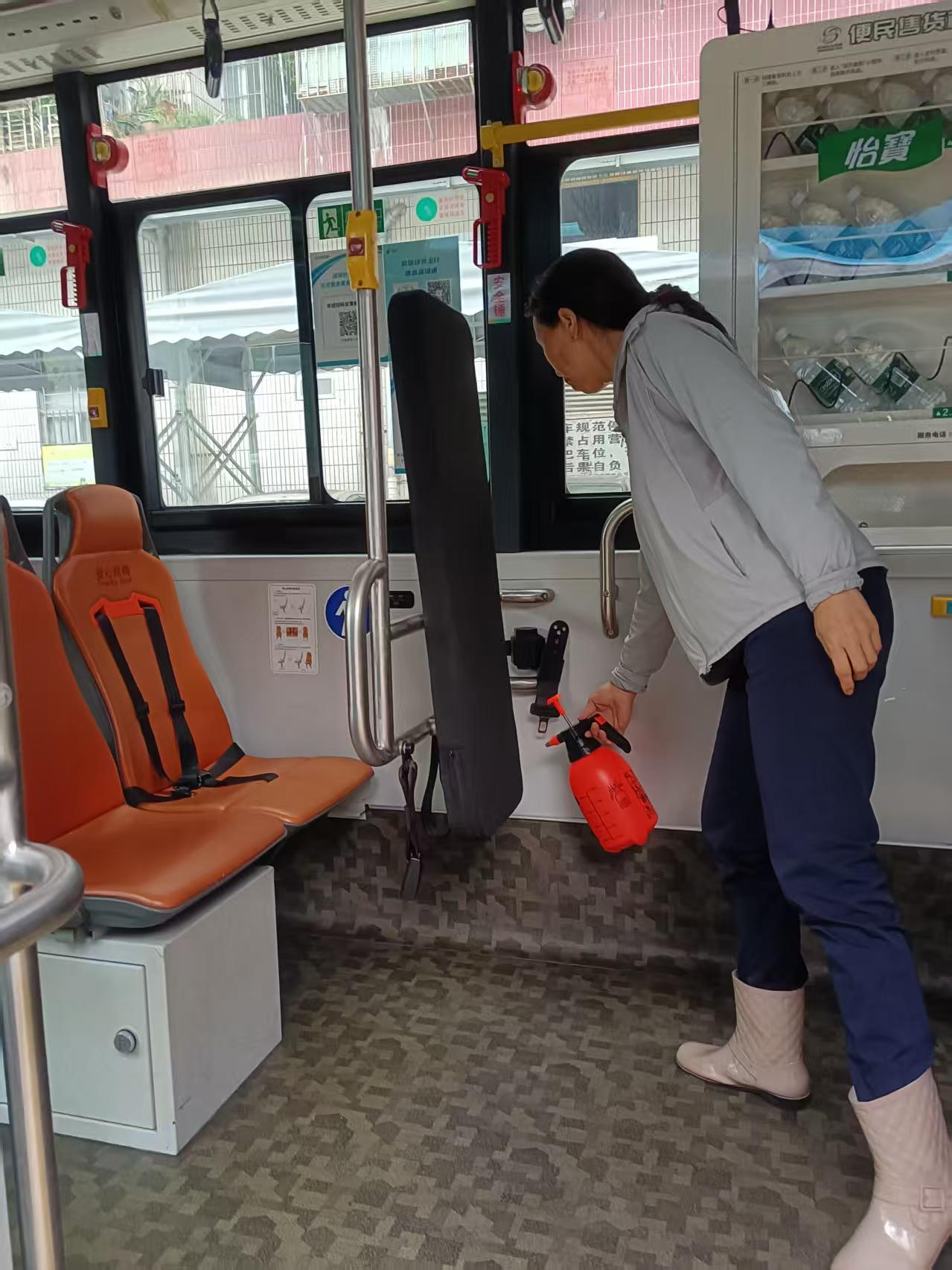 东昌车队严格执行防疫工作要求,迅速组织工作人员开展全方位、无死角的消杀作业。针对运营车辆、场站设施以及周边环境,进行系统性防疫处理。以高频次、高标准为原则,对运营车辆实施重点消杀。每日安排专人使用专业消毒剂,对公交车内的座椅、扶手、投币箱等乘客高频接触部位进行细致消毒,确保每一处细节都不放过,为市民营造安全、卫生、舒适的公共交通环境。