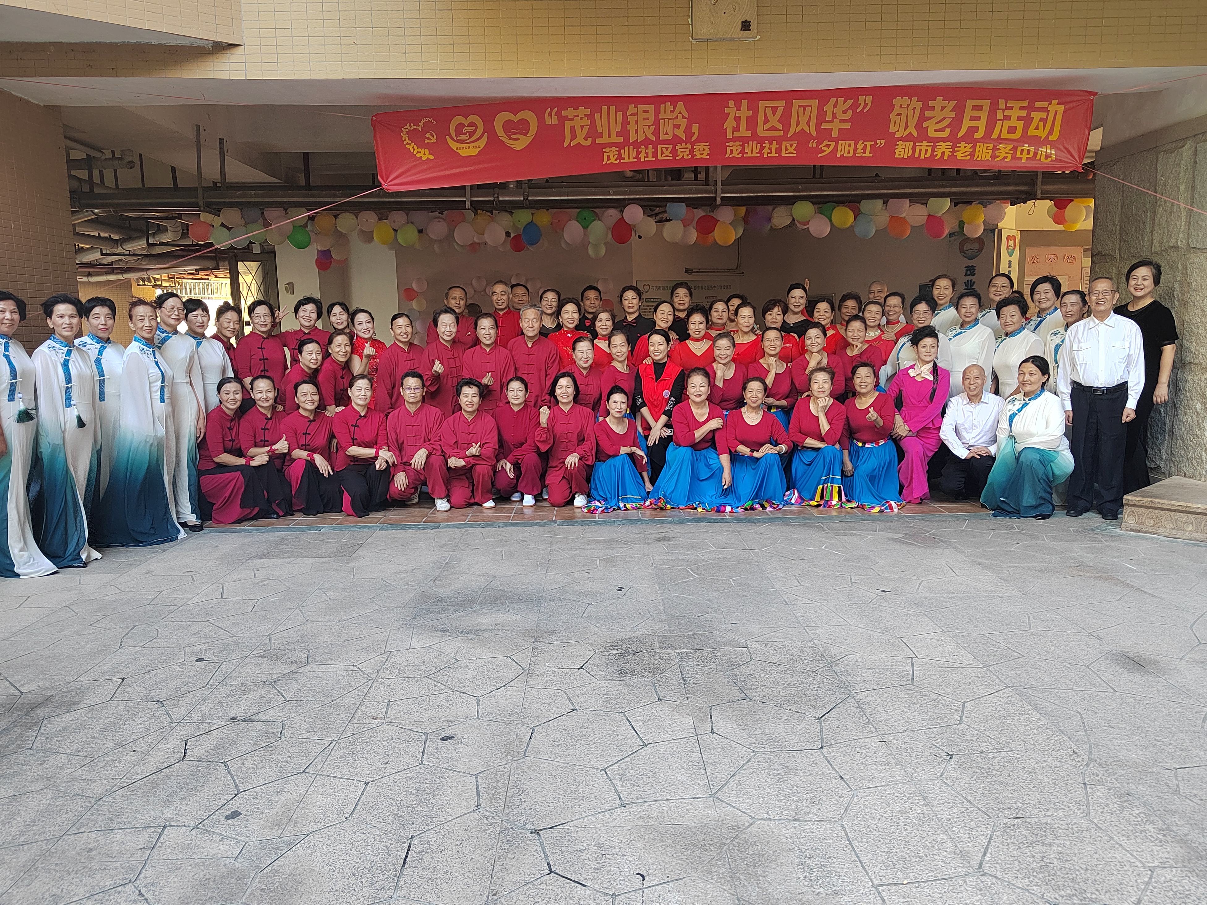 在2025年全国第16个“敬老月”期间及重阳节到来之际,布吉街道茂业社区“夕阳红”都市养老服务中心内掌声阵阵、笑语盈盈,一场以“茂业银龄、社区芳华”为主题、由平均年龄七十岁的长者自编自演的文艺汇演温情上演,展现出银龄群体的活力与风采,成为2025年全国“敬老月”活动中一道亮丽的社区风景。