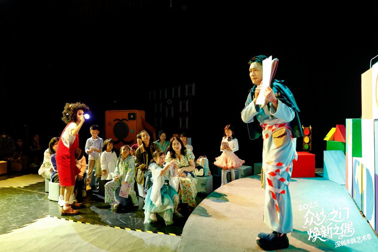 10月24日,2025深圳木偶艺术季开幕式启动,同时“青秀场”孵化的沉浸式亲子偶剧《睡衣神探》在滨海演艺中心开启演出。