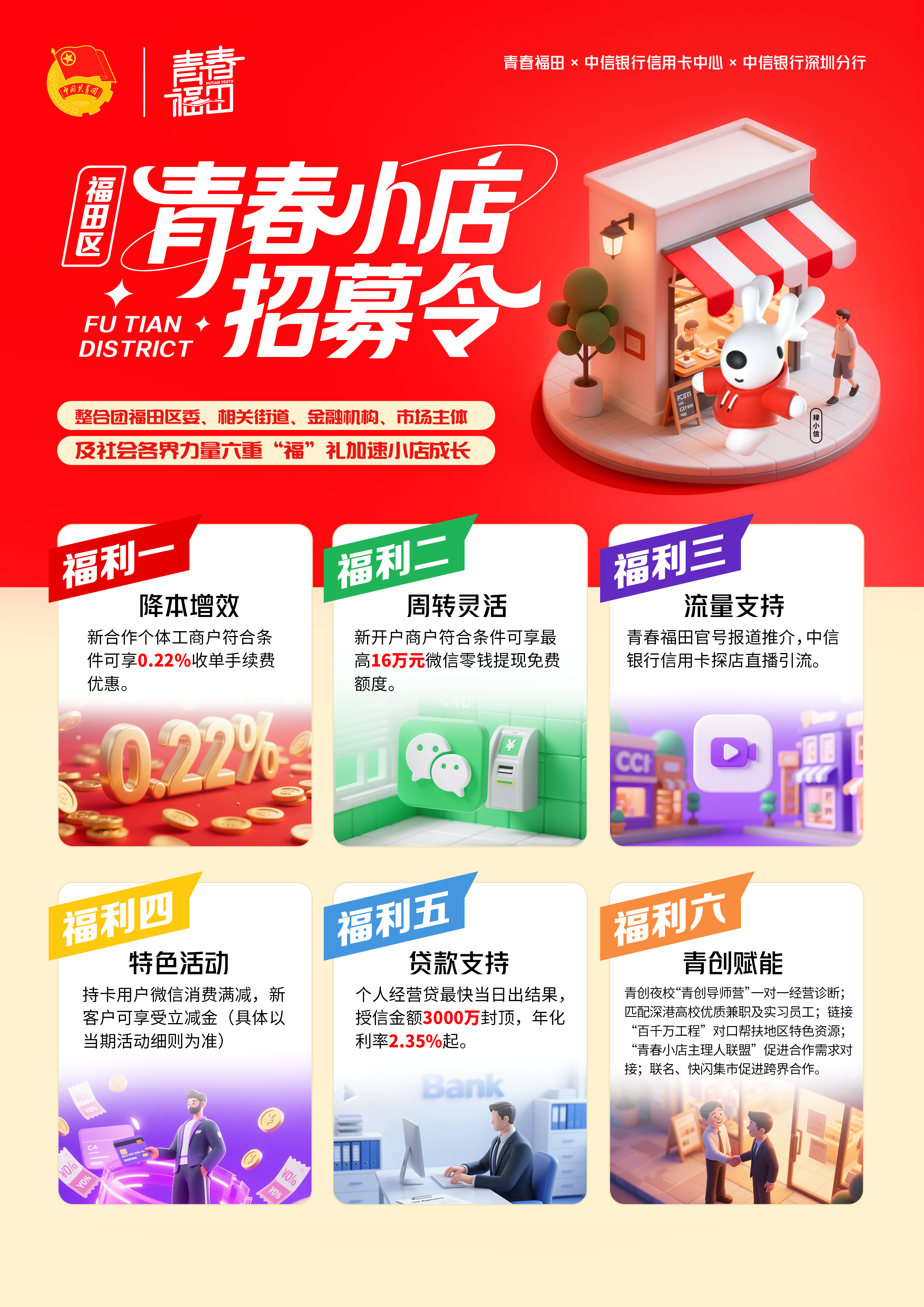 据了解,福田区青春小店赋能计划将逐步在全区推广,致力于培育一批有代表性的示范小店,政银合力之下,为青年创业扫除后顾之忧,在这片“福地”与“热土”上培育更多有活力的青春小店,为福田城区经济发展注入持续动能。