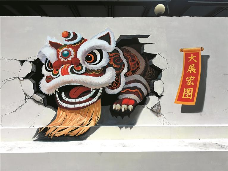 共治,体现在对细节的打磨。有的墙体基础面破损陈旧,社区便组织人力将整面墙铺平刮白;有的墙体有裂缝、漏水眼,或者有燃气管线经过,相关部门全力协调解决。这些幕后的工作,确保了墙绘创作的顺利进行和作品的长期留存。