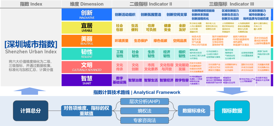 SUI的核心思想是以自然为友、以人为本。价值维度是“创新、宜居、美丽、韧性、文明、智慧”,集中体现了中国城市的价值主张、深圳的营城经验和全球城市的共识。