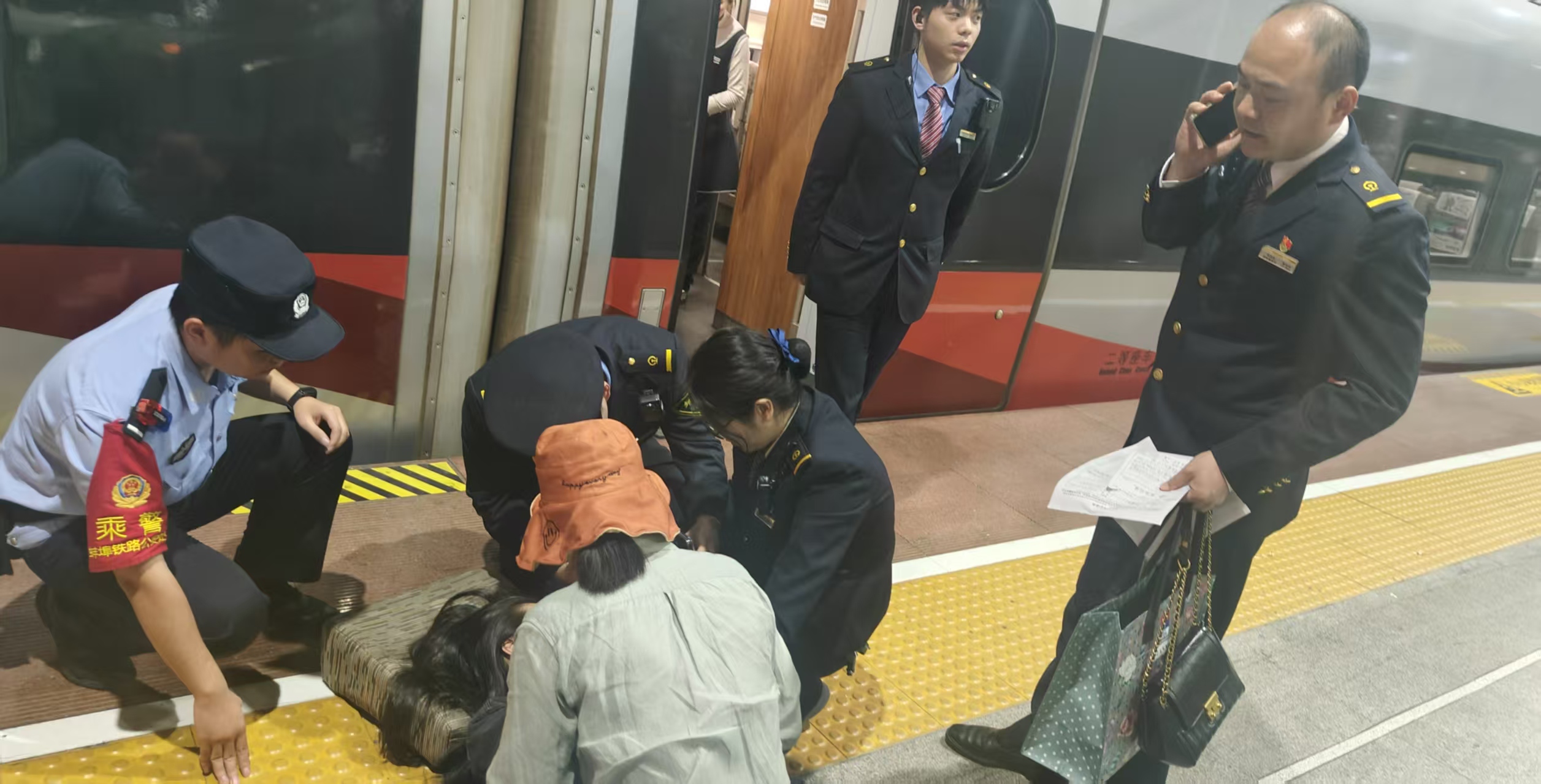 紧急时刻的守护,更能彰显服务的温度。10月24日22时46分,一名女士因错过末班车,情绪激动之下突然晕厥。值班站长刘慧、值班员朱斌、副值班员冀金柱立即展开“黄金十分钟”急救:一边按压女士虎口缓解症状,一边为她盖上衣物保暖,还耐心疏导她的情绪。考虑到女士的出行需求,工作人员建议她前往深圳坪山站乘车,并主动联系其家属赶往深圳坪山站接车。23时20分,这名旅客被家属安全接回。