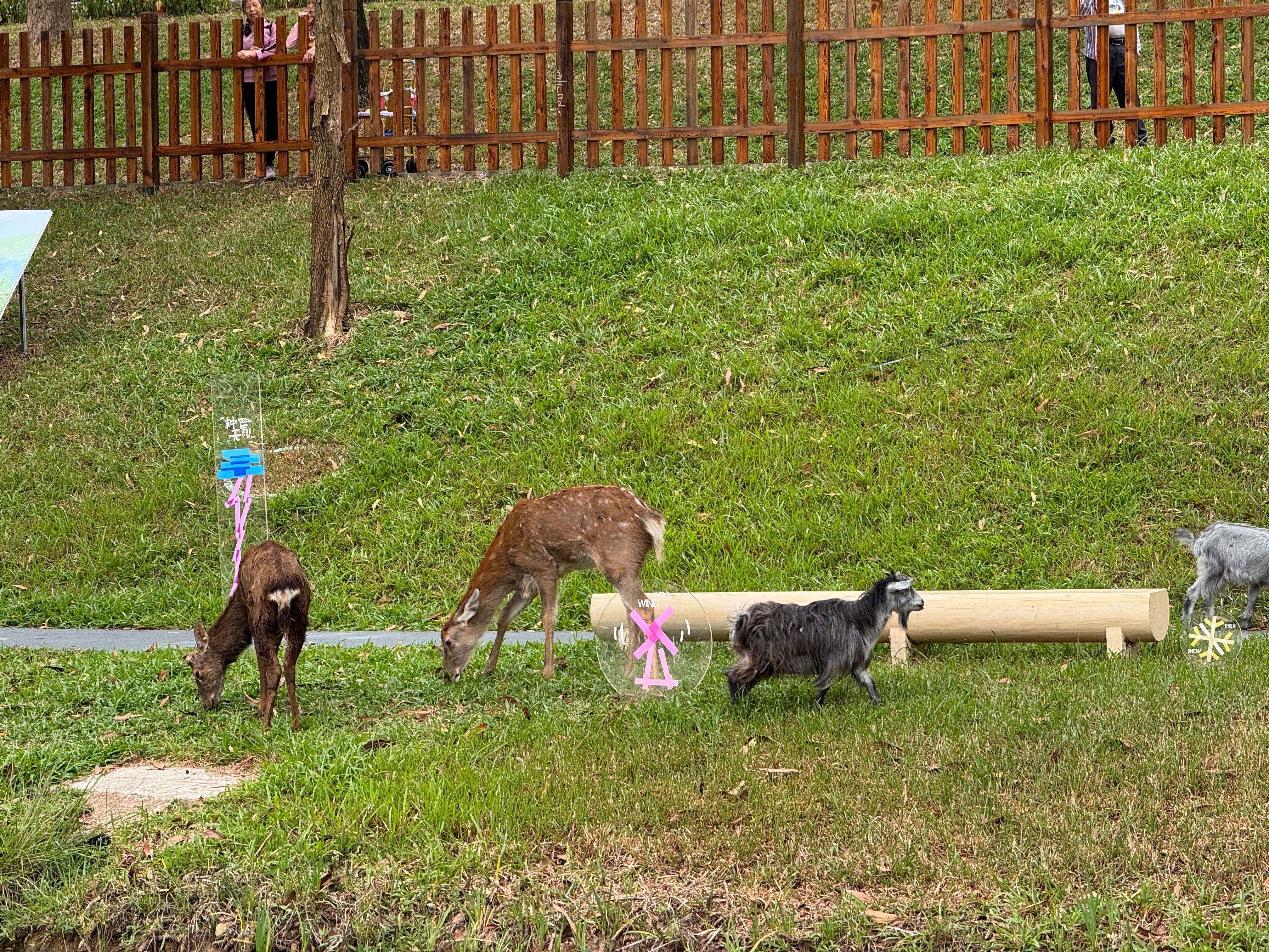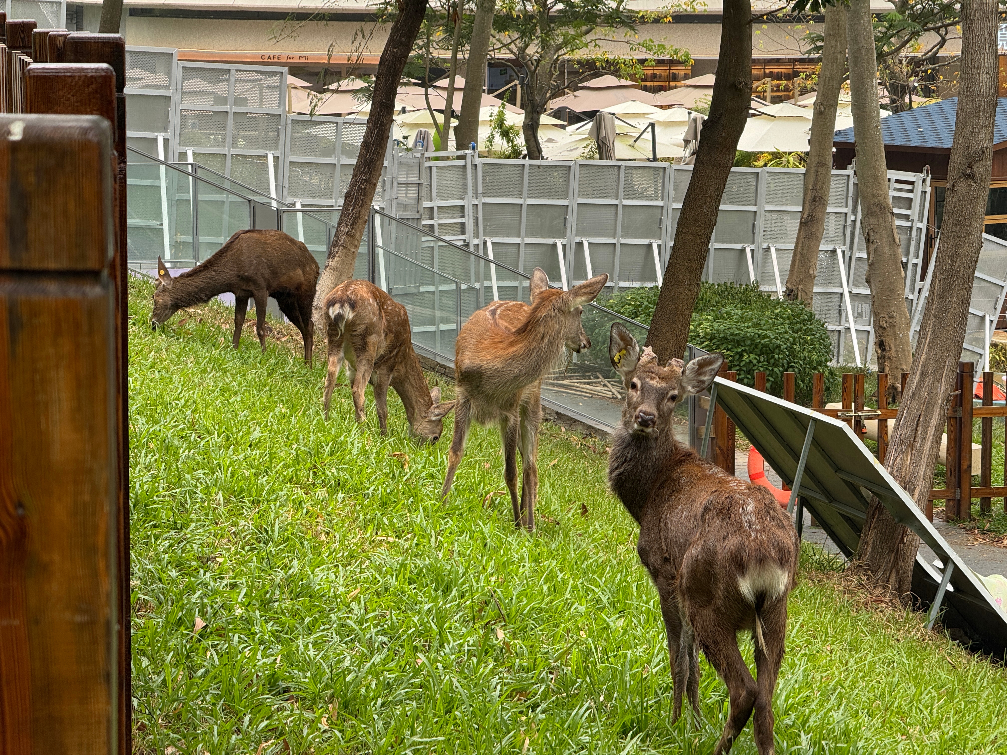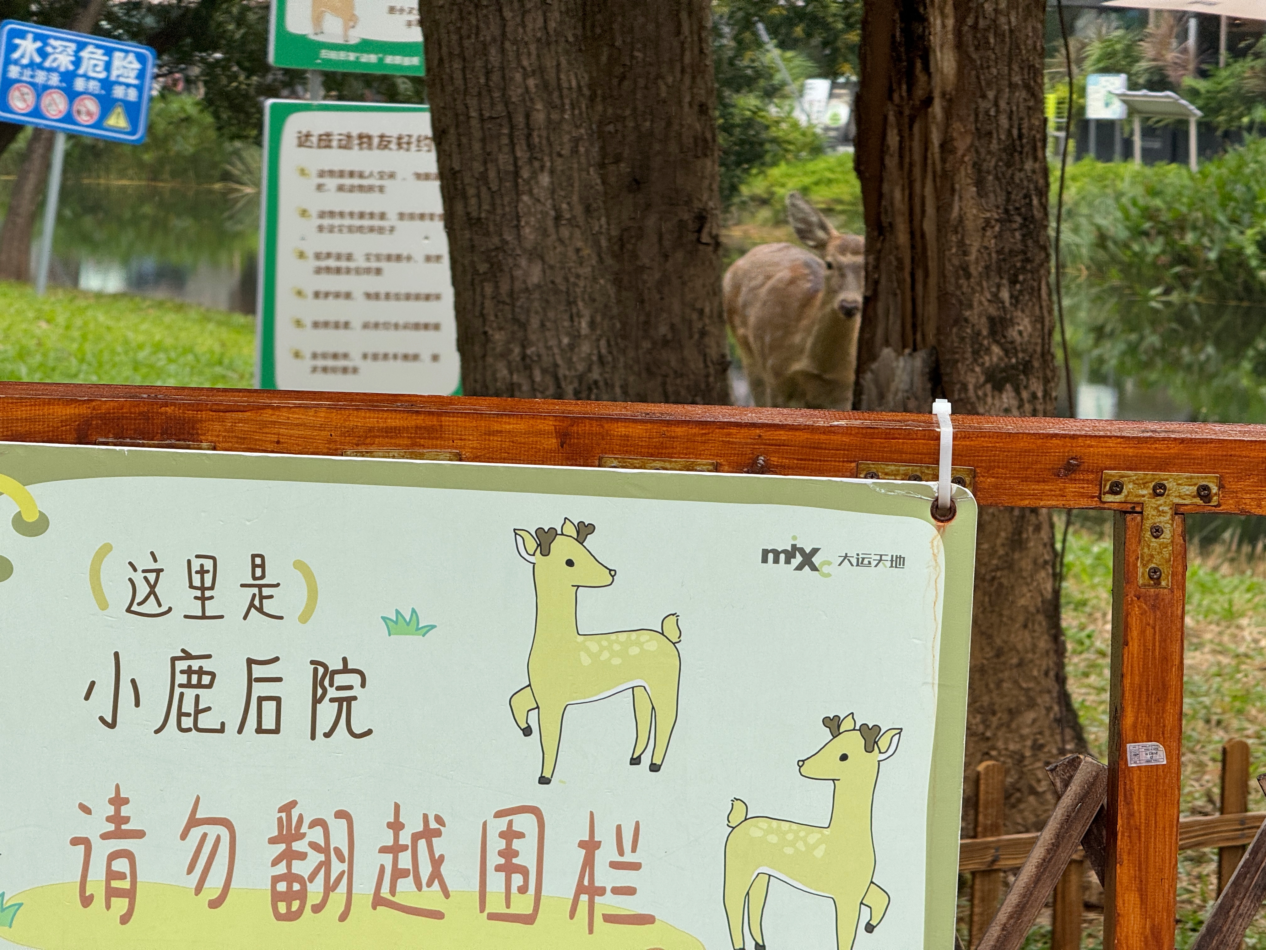 其中,几只小鹿尤其吸睛。不少游客驻足良久,掏出手机拍照录像,而小鹿们通常回以好奇的眼神,这份互动感,让人挪不开步。