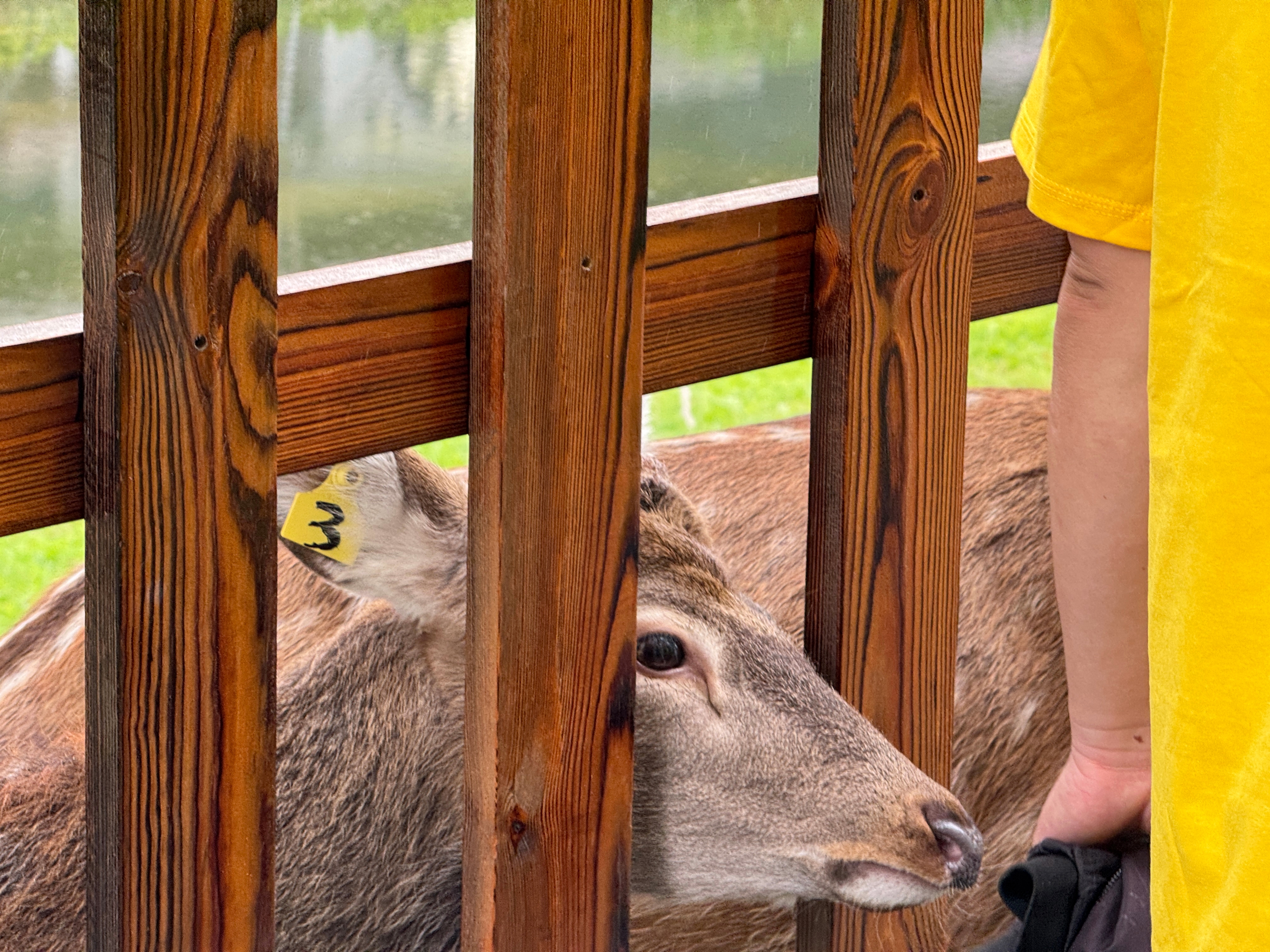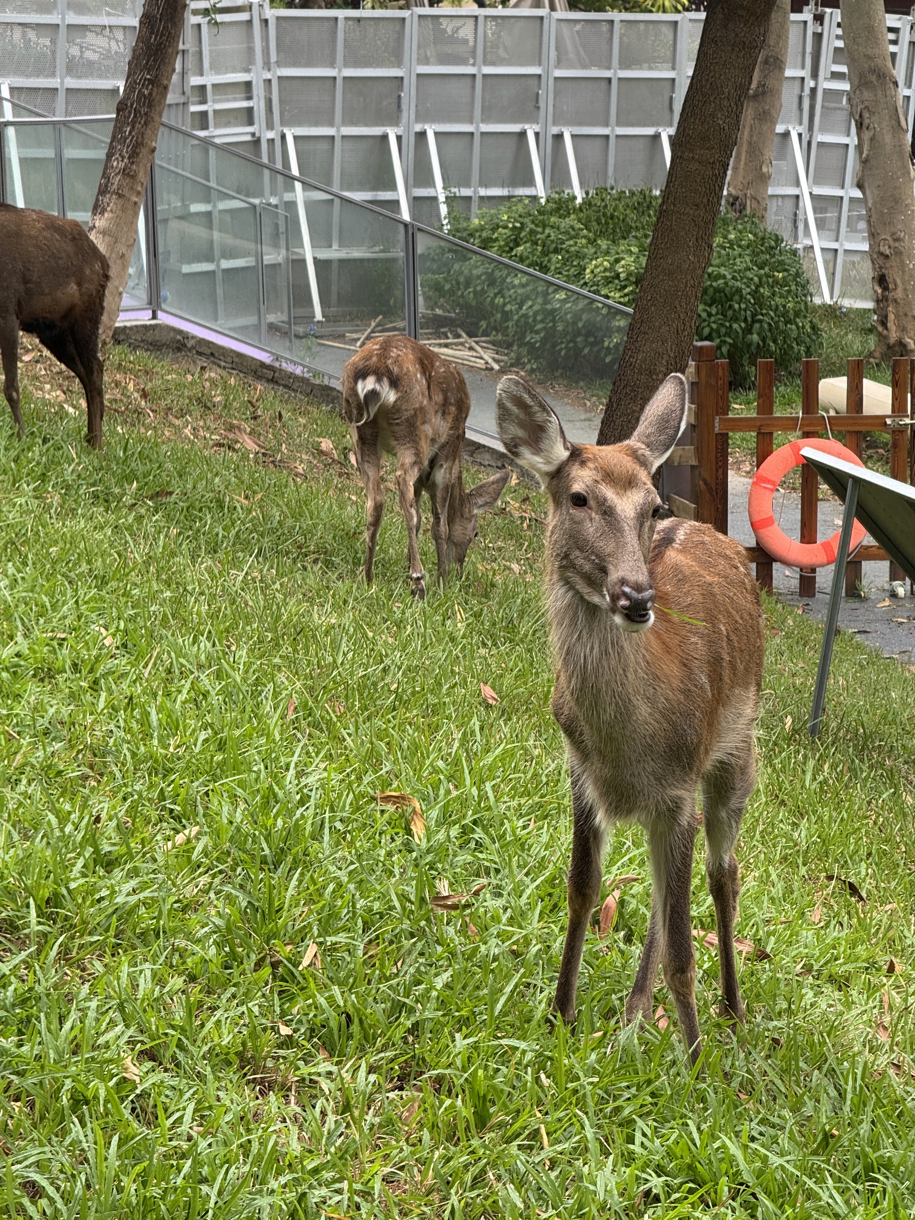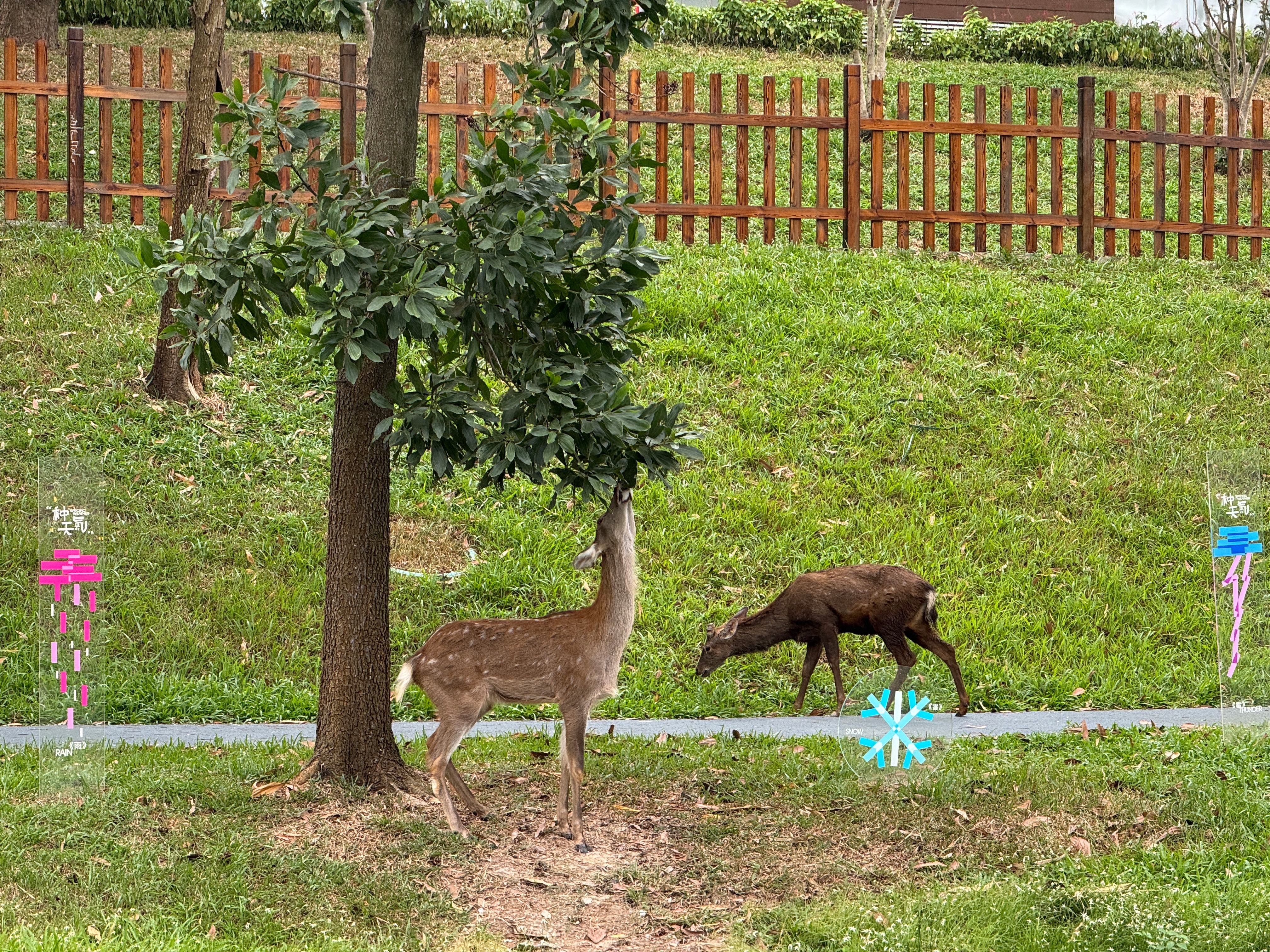 其中,几只小鹿尤其吸睛。不少游客驻足良久,掏出手机拍照录像,而小鹿们通常回以好奇的眼神,这份互动感,让人挪不开步。