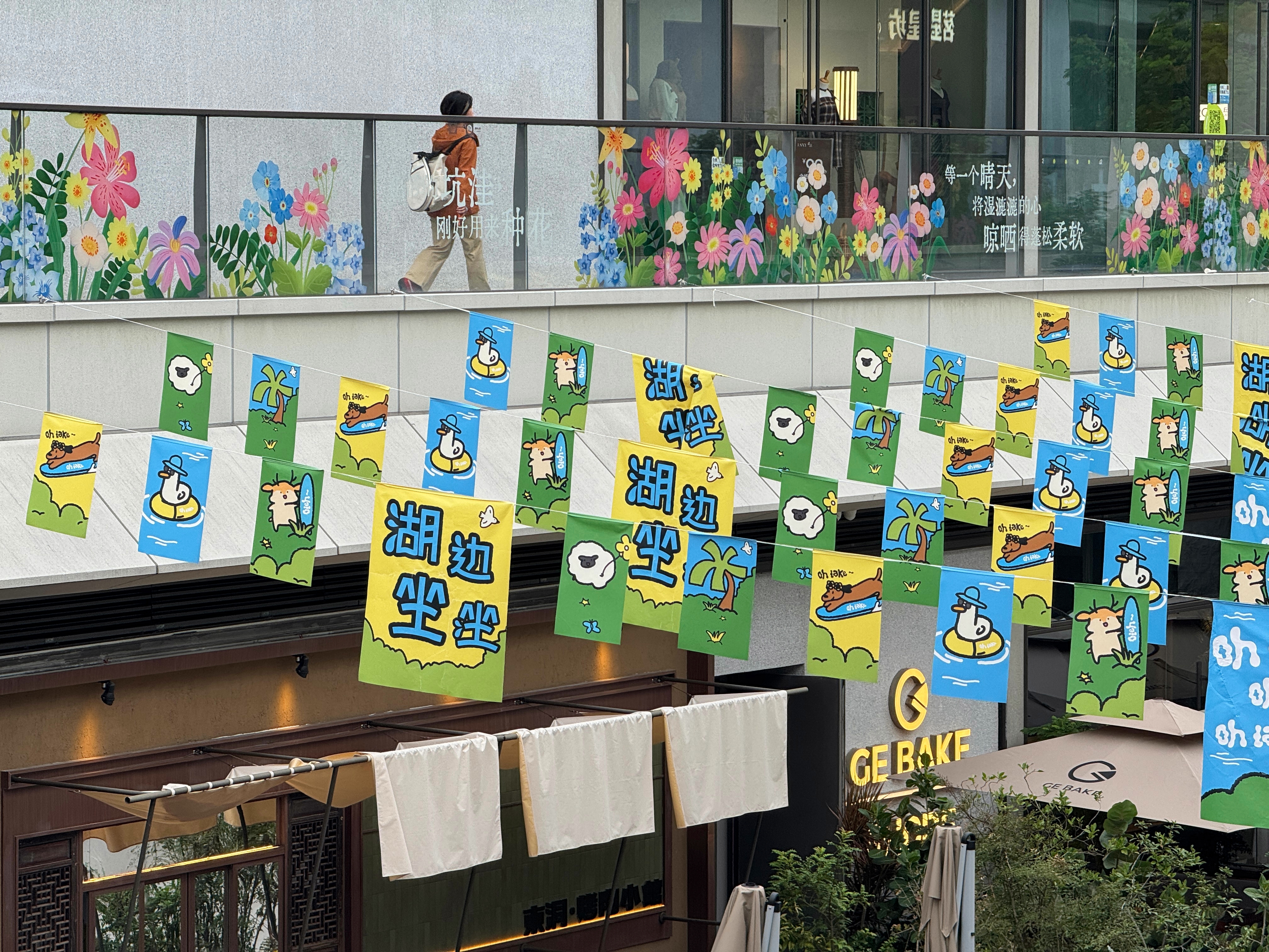 大约6.56万㎡的商业空间沿着湖和小河铺开,秋天到了,秋日的凉风裹着自然的气息扑面而来,刚好给比赛的燥热降降温,格外的舒服。