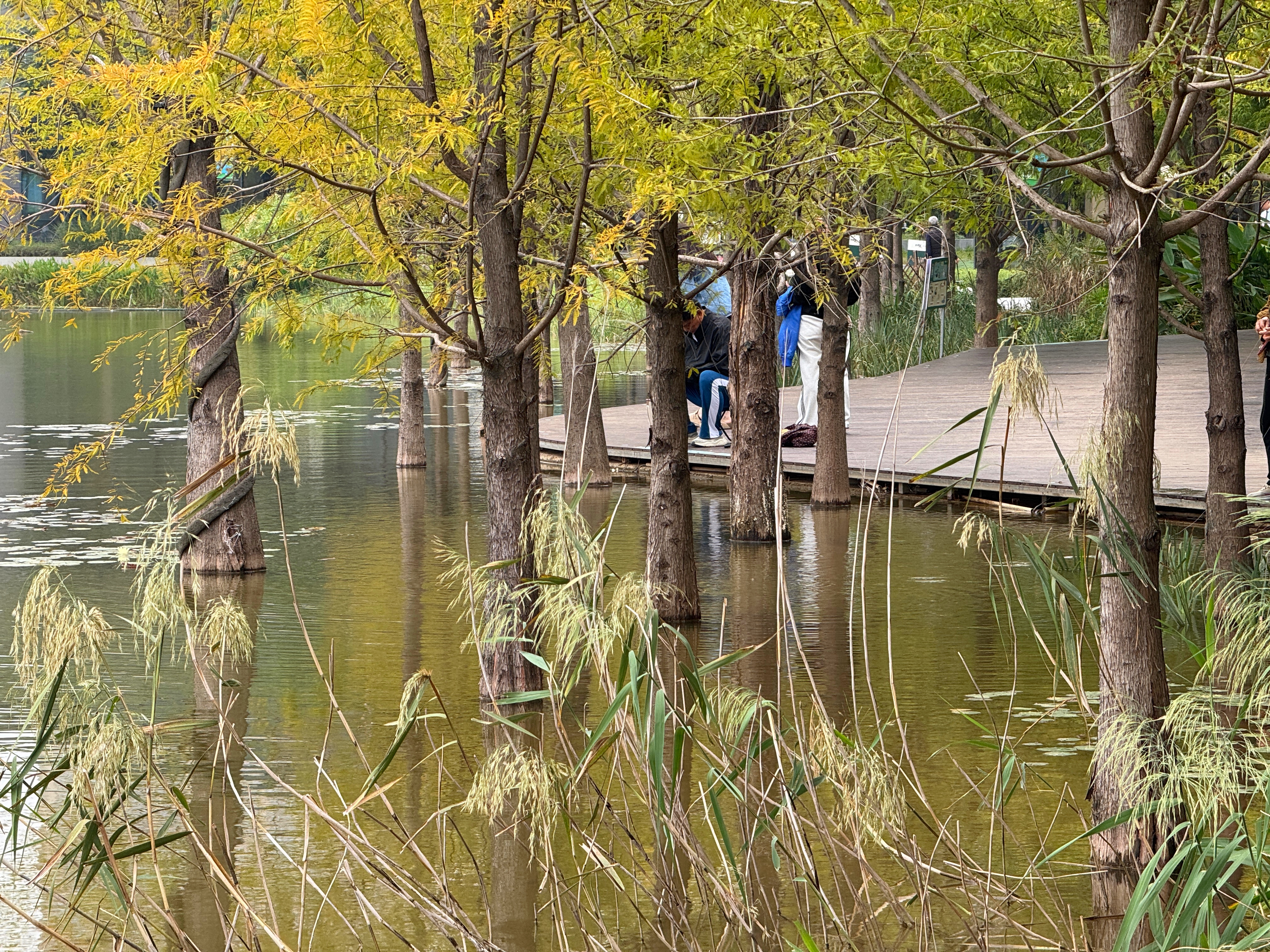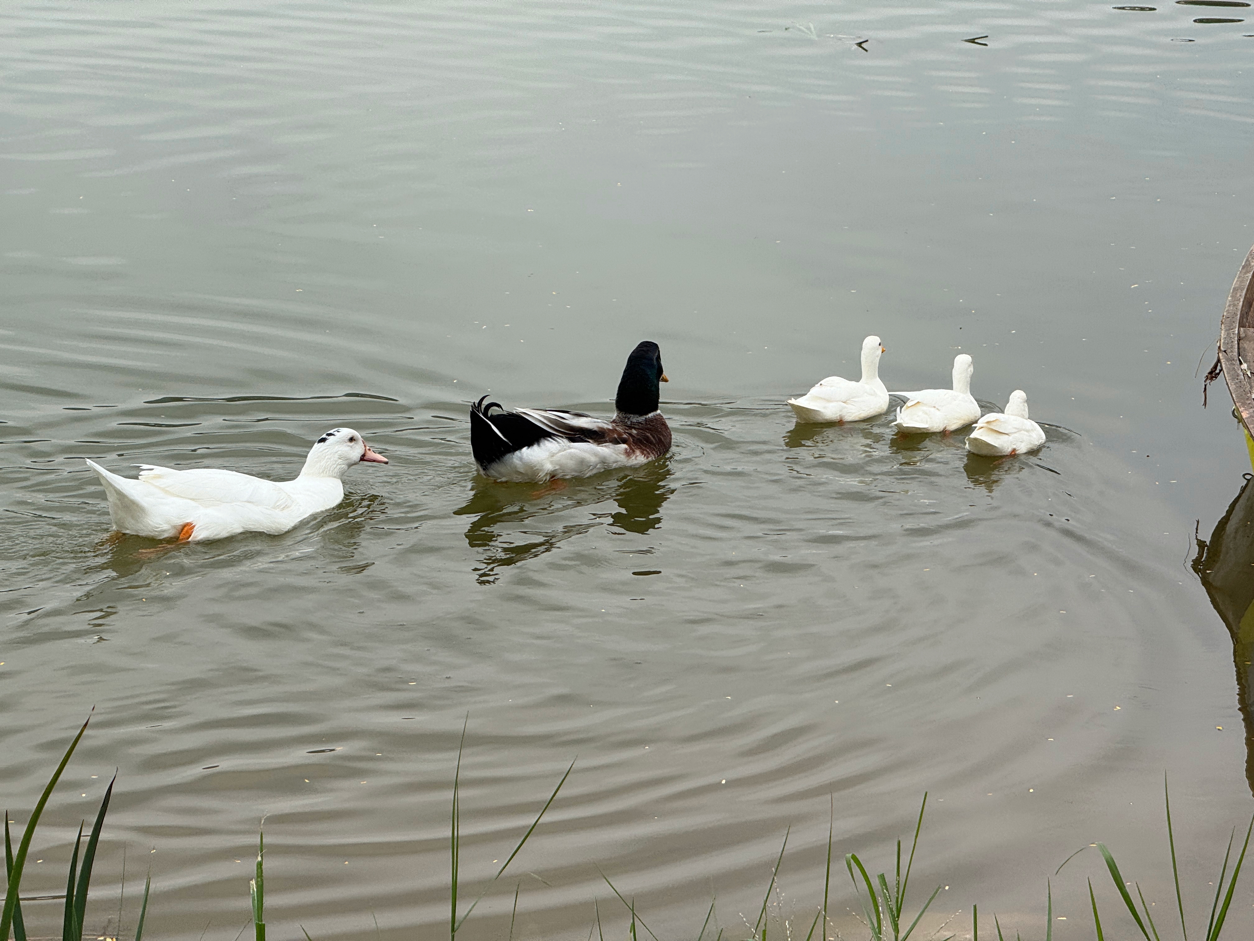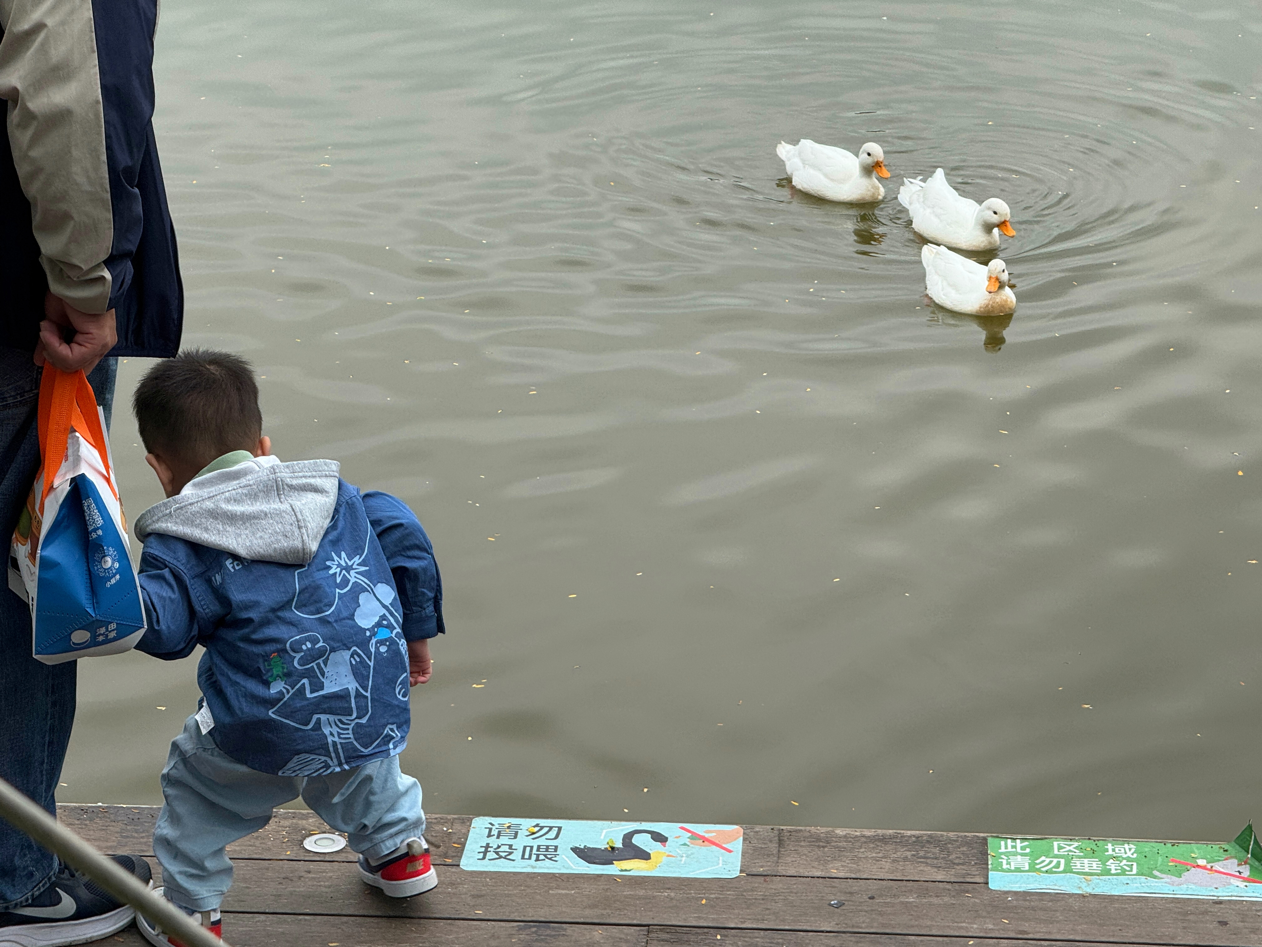 还有几只不怕人的鸭子,总爱凑到岸边,看到有人路过,会轻轻摆着尾巴往前凑。小朋友蹲在栈道边挥手,它们还会歪着脑袋 “回应”,人与自然的和谐感,就这么悄悄落在了湖面上。