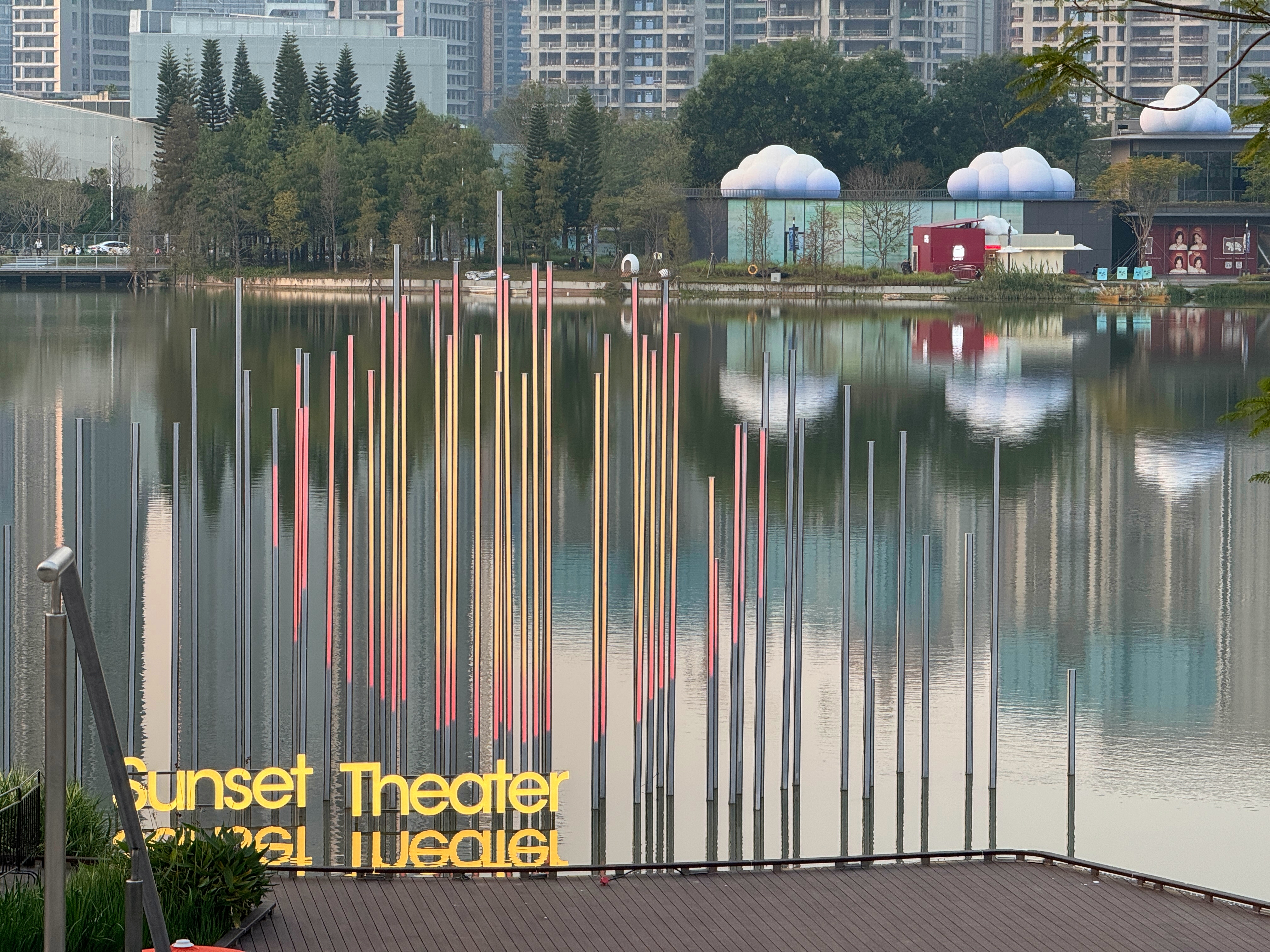 等到傍晚,湖边的日落剧场就成了主角,不用买门票,就能看到各种演出。找个台阶坐下,听着歌看夕阳慢慢沉下去,灯光亮起,惬意得不想起身。
