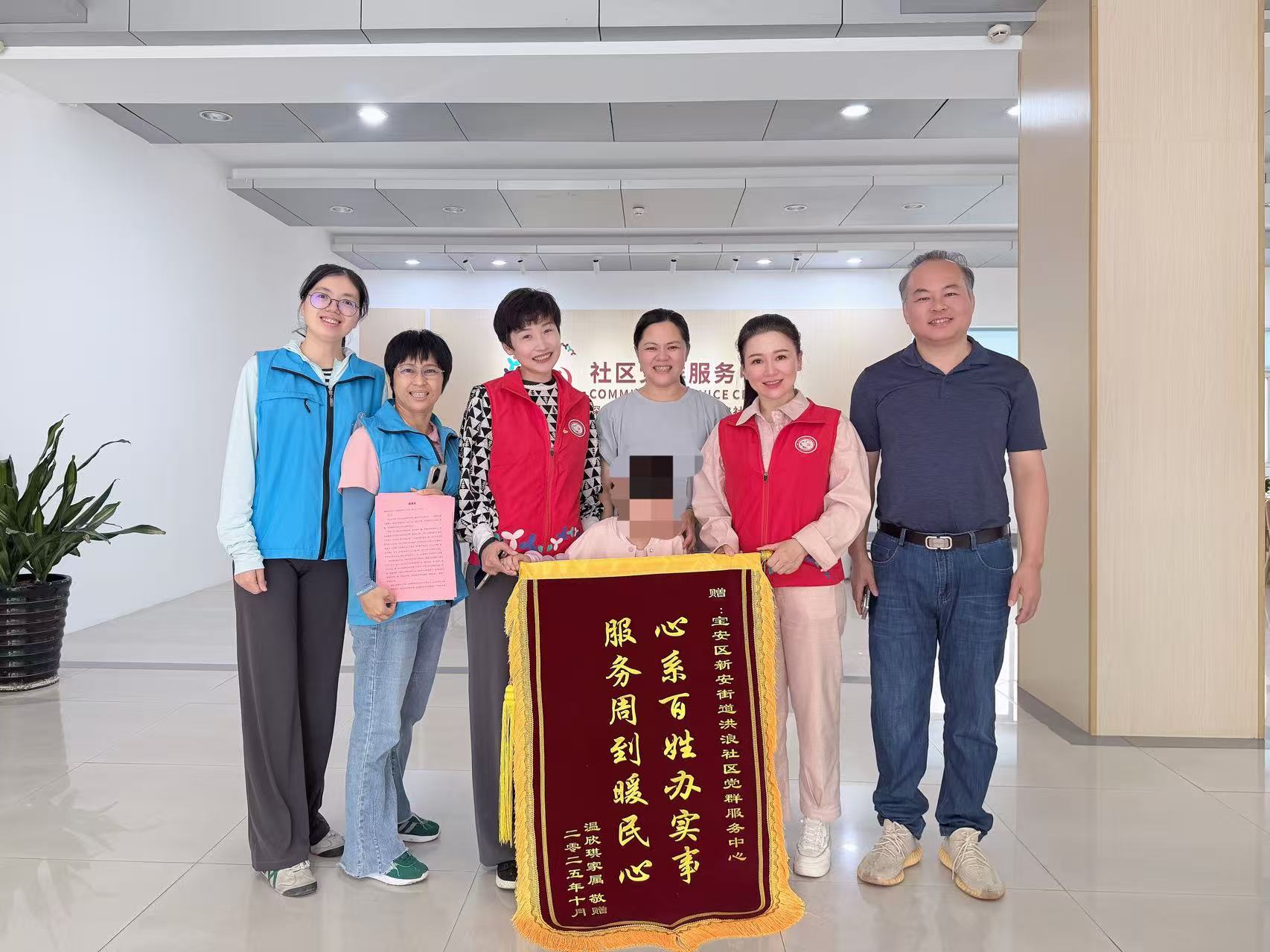 10月30日,新安街道洪浪社区党群服务中心里暖意融融,困境儿童小琪(化名)的家长专程赶来,将一面印着“心系百姓办实事,服务周到暖人心” 的锦旗郑重送到社区工作人员手中。这面红彤彤的锦旗,不仅承载着家长对社区服务的满满信任与认可,更饱含着对社区关爱困境儿童、切实为民解忧的真挚谢意。