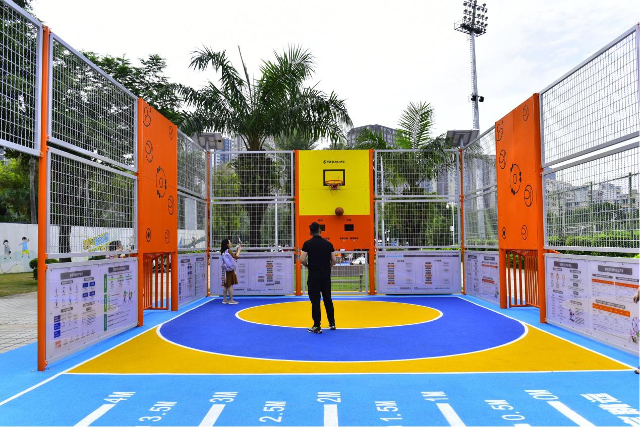小小运动场则成了市民的“竞技场”。智能趣味投篮机前,小林正和同伴组队挑战“60S速投”,据工作人员介绍,该区域不仅可用于基础技能训练,还能组织小型互动竞赛,有助于提升青少年的团队协作能力和运动反应速度,是集健身、竞技与娱乐为一体的多功能运动空间。