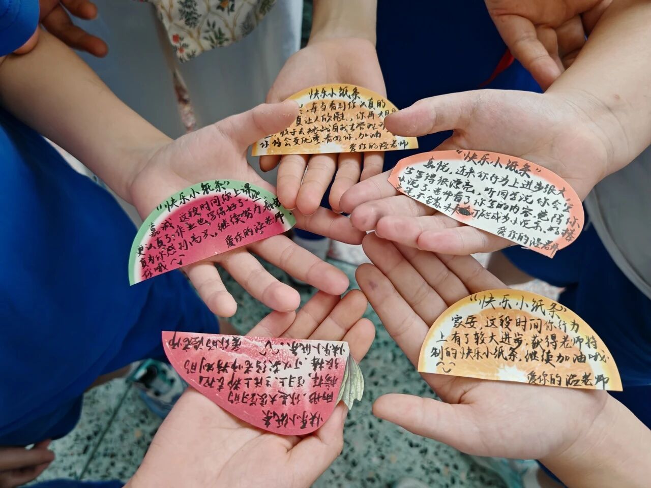 “我会把照片打印出来,配上‘你主动帮同学捡文具的样子真暖心’‘课堂上的你眼神发亮,真棒’这样的文字,做成‘快乐小纸条’发给孩子。”温伟茂说,原本只是抱着试试看的心态,没想到效果出奇地好。短短几周后,班级里主动做好事的同学越来越多,课前准备井然有序,课堂纪律明显改善,曾经剑拔弩张的氛围变得和谐融洽。“孩子们都盼着能拿到小纸条,慢慢就养成了好习惯,学习兴趣也跟着提上来了。”