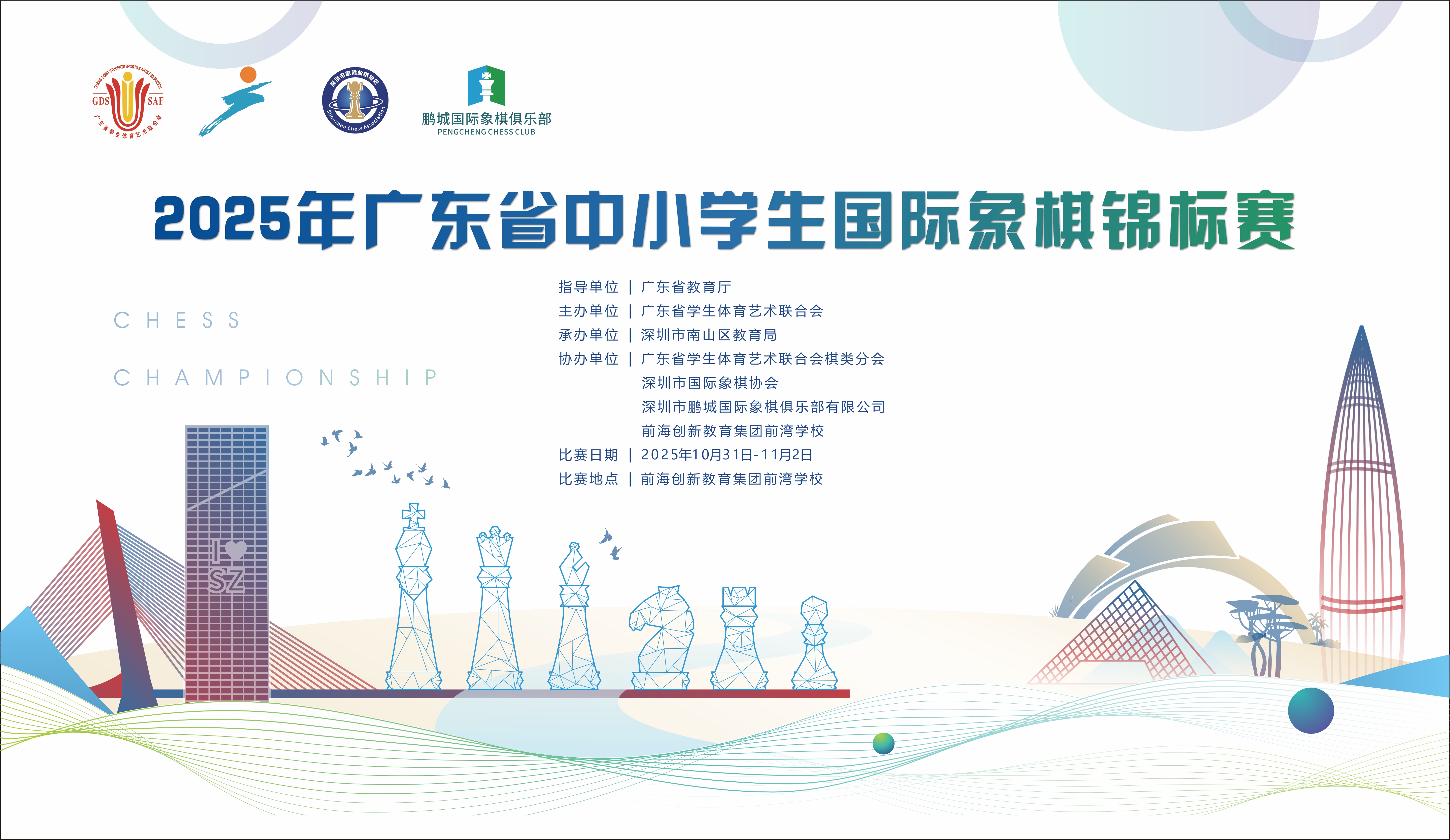 智慧交锋一触即发,青春博弈点亮前海。10月31日至11月2日,2025年广东省中小学生国际象棋锦标赛将在深圳前海创新教育集团前湾学校举行。这场汇聚了全省22所学校和机构中小学棋手的智力盛会,将有600余名棋手共展棋枰风云。