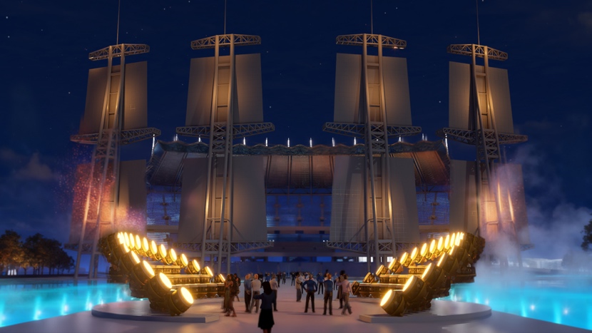 当夜幕降临,海心沙亚运公园主会场内将推出30场轻演艺演出,包括杂技、舞蹈、魔术等,结合人偶互动与AIGC技术,营造艺术与科技交融的节庆氛围。观众席看台区域作品《涛起潮动》,则通过“海浪涌动”的光影形态,配合表演者的场景化演艺,形成“人随光动、光伴人舞”的效果,象征粤港澳大湾区的活力与全运赛场上“拼搏如潮、永不言弃”的精神。