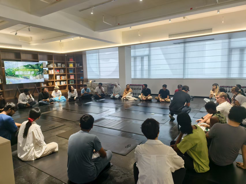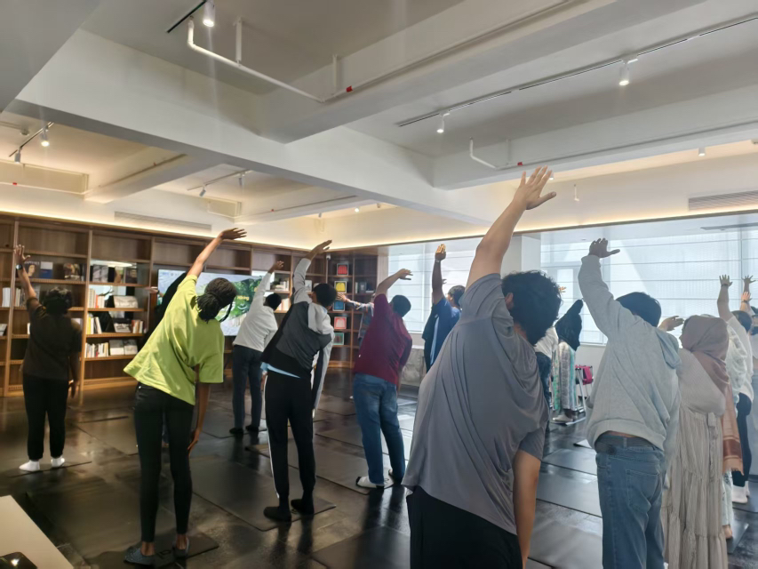 正式徒步前,一场专为户外场景设计的瑜伽与呼吸练习课,为活动拉开了温暖序幕。在翼真专业教练的耐心引导下,推介官们跟着呼吸节奏舒展肢体,慢慢调整身心状态。“原本因车程有些疲惫,但跟着教练调整呼吸后,身体很快就放松下来了。”一位来自摩洛哥的推介官笑着分享。