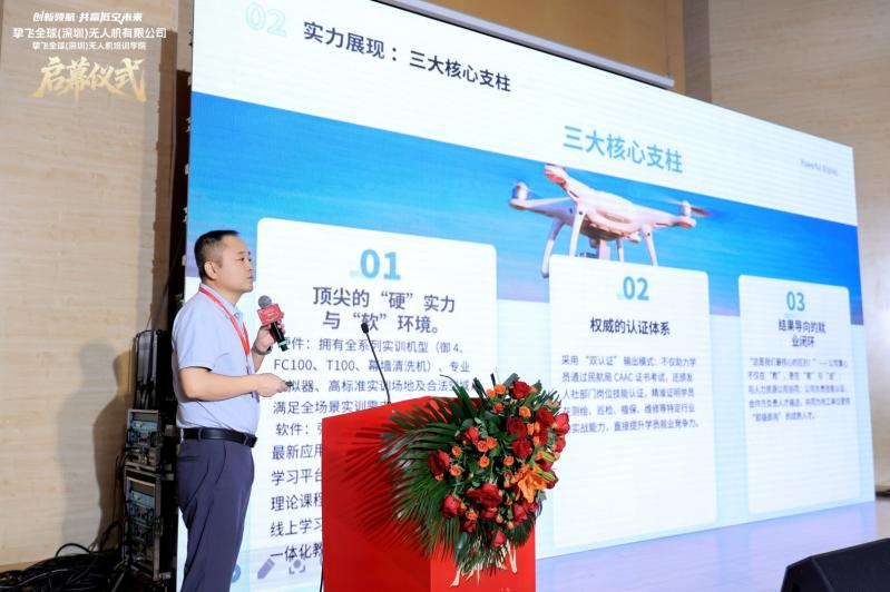 深圳市人力资源服务协会会长杜斌在致辞中指出,当前无人机行业存在“持证不会用”的普遍问题。他表示,挚飞全球的培训课程紧密结合工业应用场景,如幕墙清洗、电力巡检等,精准对接行业需求,实现人才培养与产业发展的有效衔接,是“以结果为导向”的培育模式。