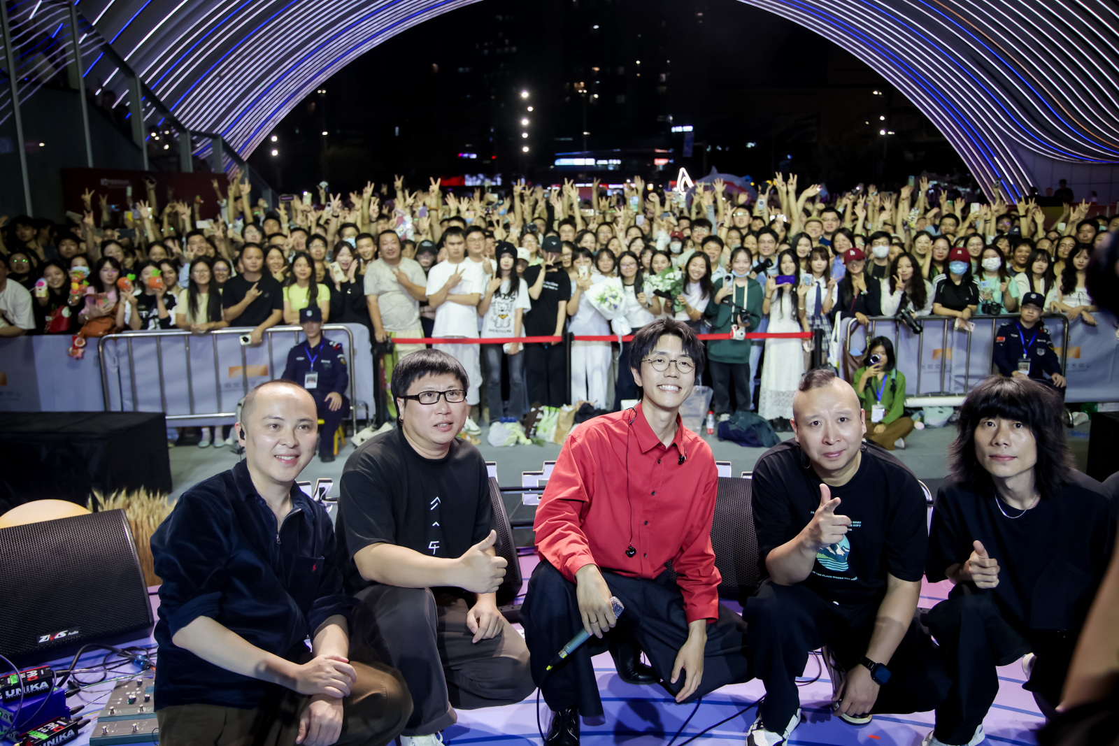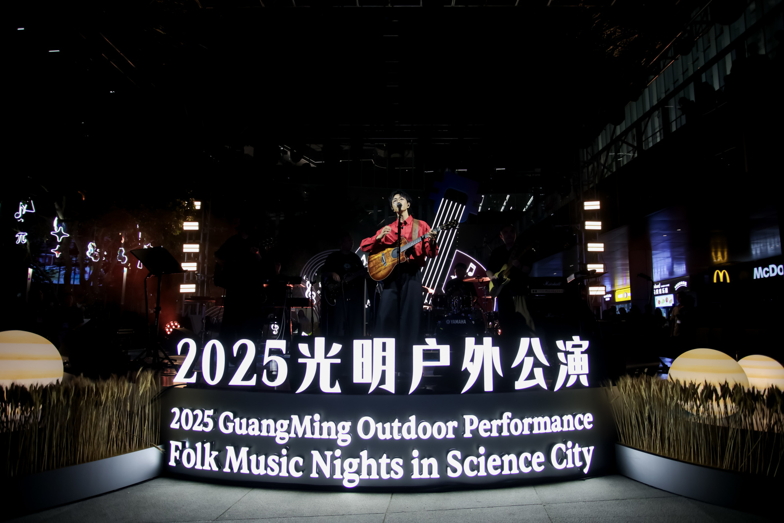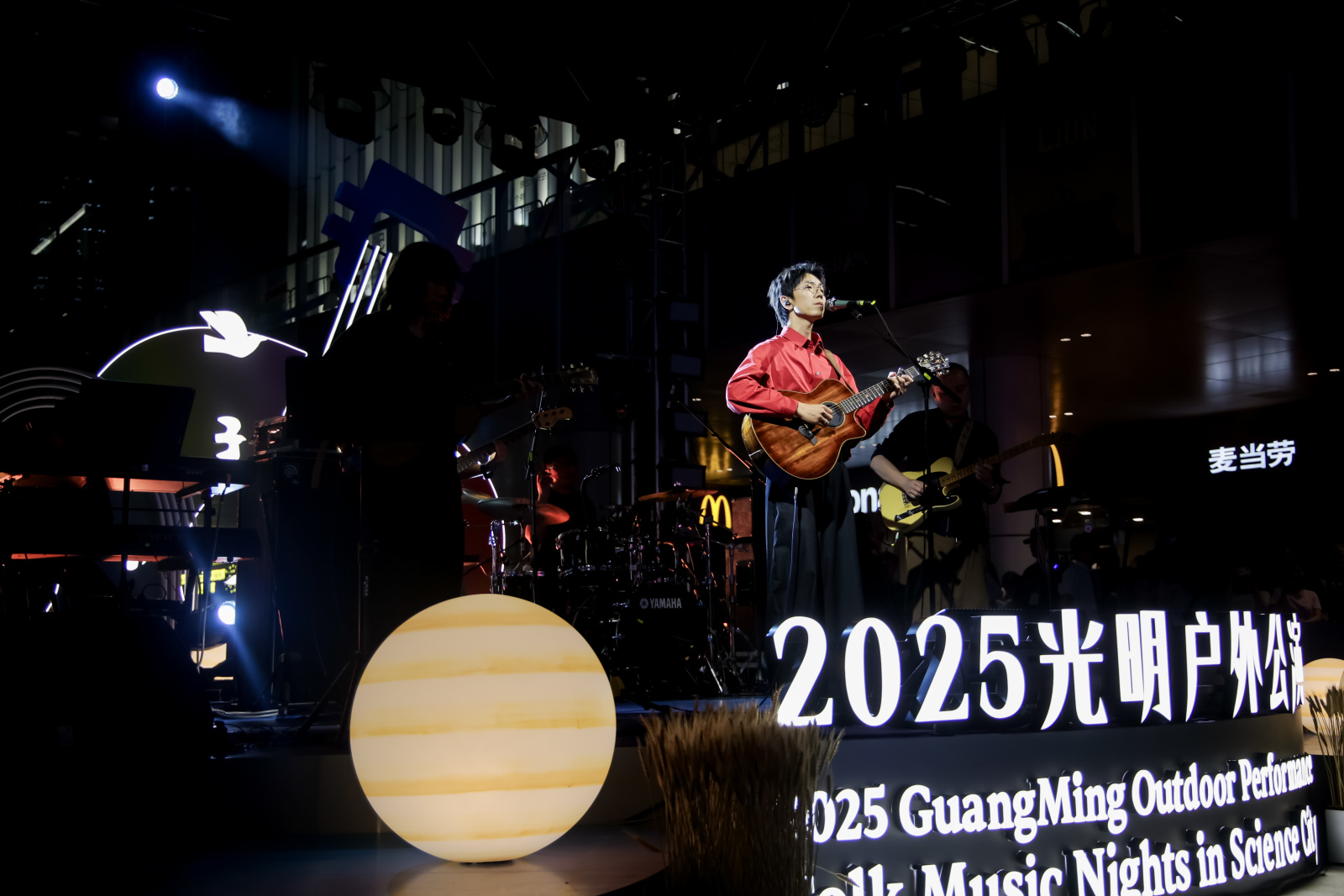 最后登场的陈鸿宇则以《一如年少模样》《途中》等作品唱出旅途的思索与成长的回响,携两首未发布的新歌与大家见面,还向现场观众分享自己来到光明、游览光明迳口村与虹桥公园的感受,最后一曲为本场演出而改版的“轻柔版”《理想三旬》,更是引起全场观众大合唱,晚风中回荡着共同的记忆与温柔的力量——此刻,夜色弥漫的光明科学城,在音乐与艺术的交织中显得格外明亮与动人。
