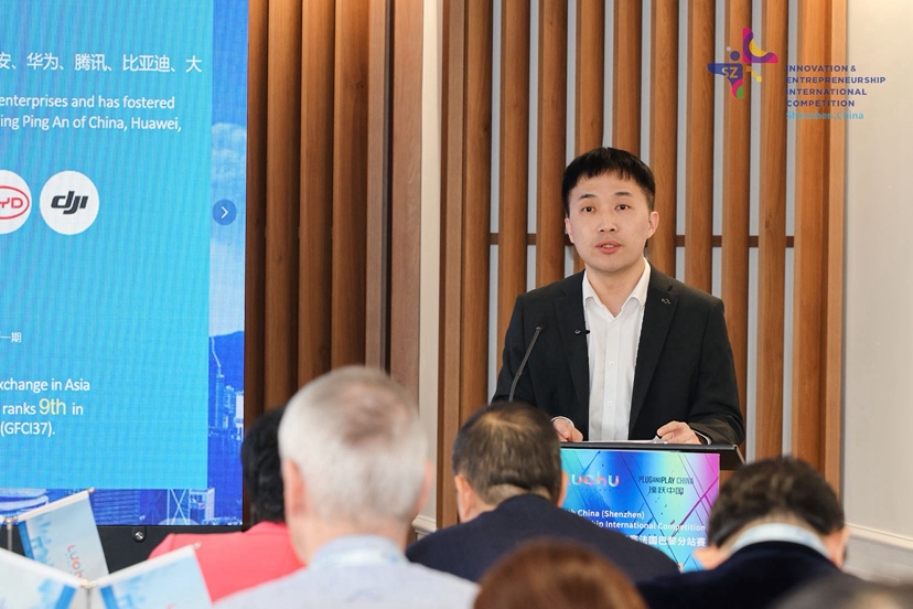 罗湖区人力资源局何炼局长现场向嘉宾和参赛选手介绍罗湖基本情况,全面推介罗湖创新创业环境。