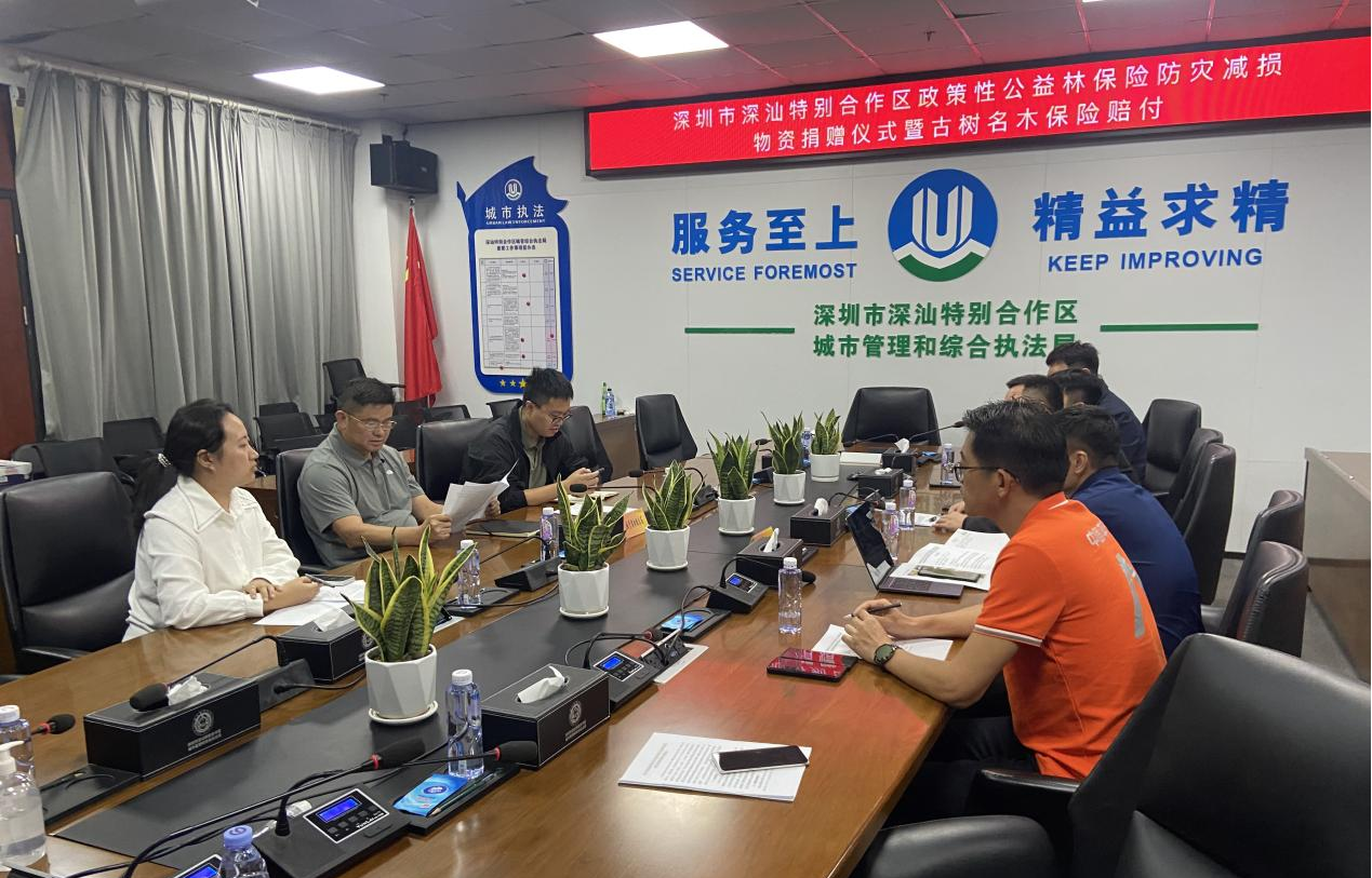 近日,深圳市深汕特别合作区城市管理和综合执法局与平安产险深圳分公司召开工作座谈会,双方就生态公益林风险保障、防灾物资捐赠及古树名木综合保护的合作进展进行深入交流探讨。