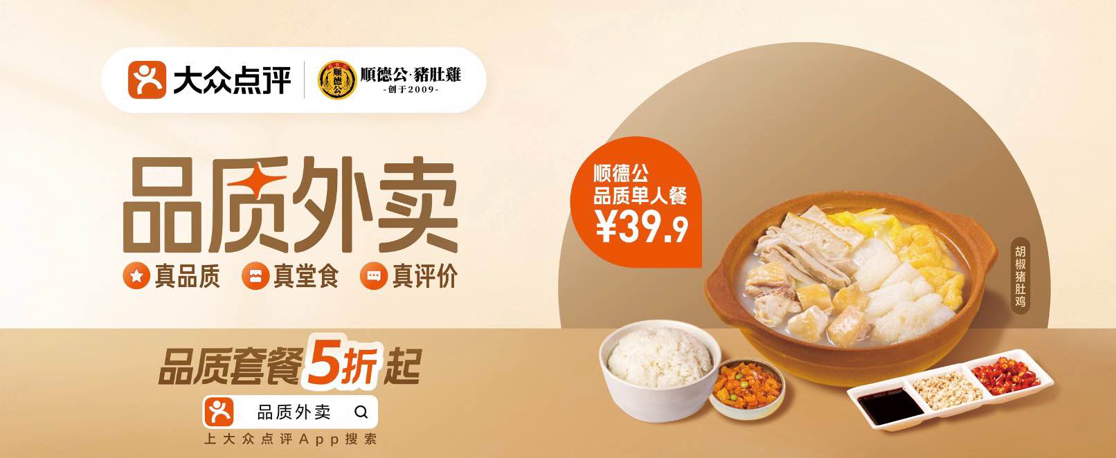 记者观察到,本次新加入的餐饮商家大多为大众点评上的高分堂食大店,其中不乏2025“必吃榜”上榜门店。以顺德公·广东猪肚鸡为例,其“必吃榜”门店堂食人均价格为98元,本次在“品质外卖”推出的“招牌一人食套餐”定价为39.9元,领券后最低价不超过25元,包含胡椒猪肚鸡等招牌菜。
