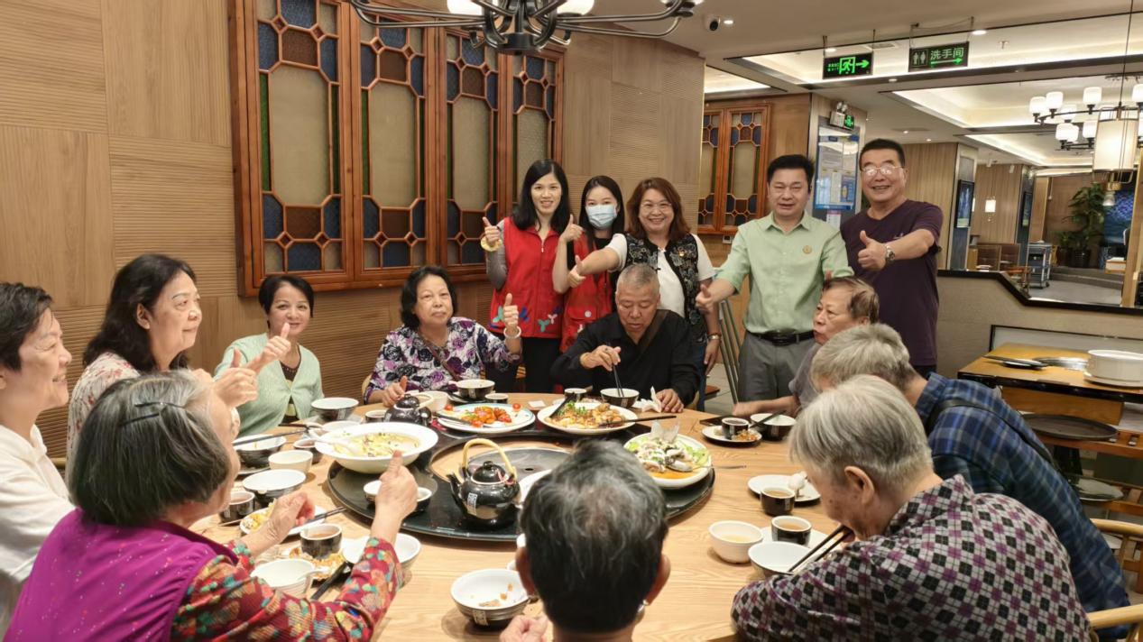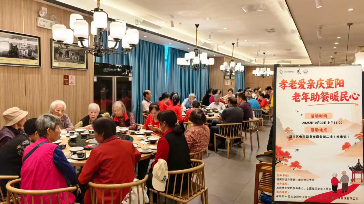 为弘扬中华民族尊老敬老的传统美德,营造良好社会风尚,提升社区老年群体的幸福感与归属感,10月30日上午,在福田街道公服办指导与支持下,由水围社区党委牵头,联合社区老年人协会、深圳市水围实业股份有限公司,携手爱心企业深圳市渔米粥饮食管理有限公司,共同开展“孝老爱亲庆重阳,老年助餐暖民心”敬老月主题活动。此次活动共设15桌宴席,宴请辖区长者152人,为长者们送上一场充满关爱与暖意的爱心盛宴。
