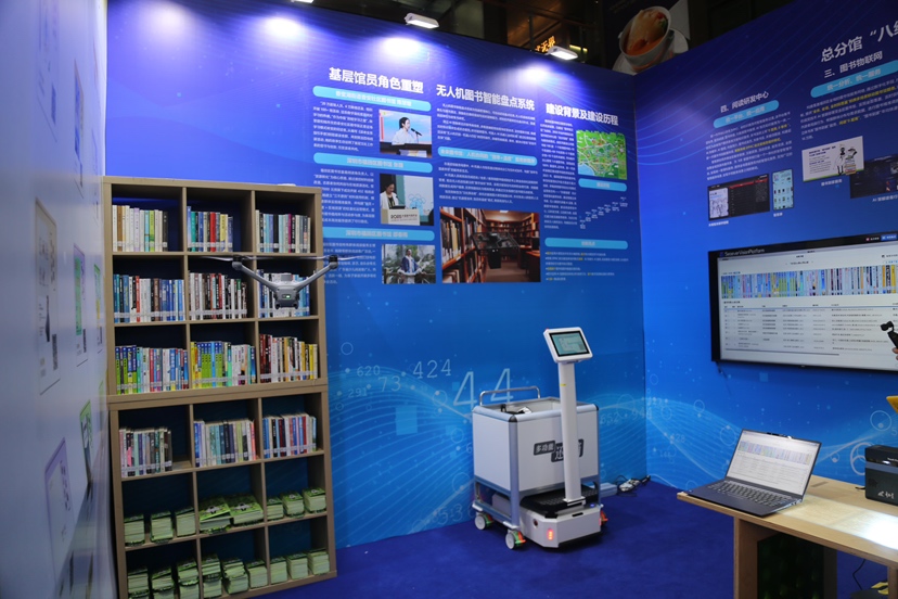 尤其引人注目的“无人机图书智能盘点系统”,融合自主飞行、AI图像识别与数据管理技术,可在书架间灵活穿梭,实现高、中、低多层区域全覆盖盘点,可实时识别书脊信息,自动比对图书状态,并同步上传至管理平台,让“未来阅读”照进现实。