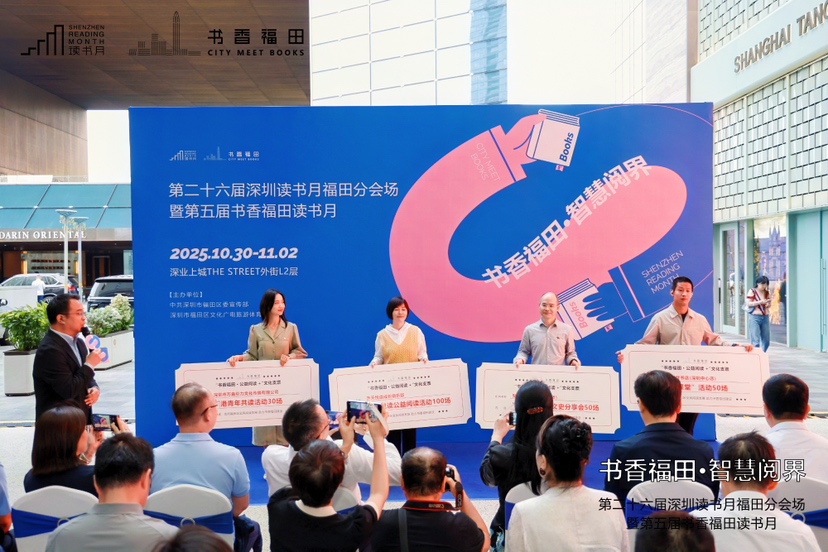10月31日,第二十六届深圳读书月福田分会场暨第五届书香福田读书月在深业上城THE STREET外街L2层正式拉开帷幕。今年,福田区以“书香福田·智慧阅界”为主题,以“AI、新大众文艺、融合、生态、全民、成长、公益”七大关键词为锚点,为市民读者带来300余场阅读文化活动。市、区、街道相关领导,以及文化学者、阅读推广人、公益合作单位代表与市民读者共同见证这一文化雅集。