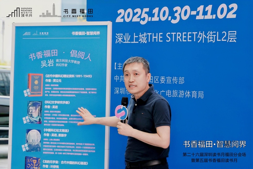 本届书香福田读书月邀请南方科技大学教授吴岩担任“书香福田・倡阅人”。吴岩教授是中国科幻研究与评论领域的领军人物,也是首位荣获美国科幻研究协会托马斯·D·克拉里森奖的中国人。吴岩教授不仅在现场分享了独特的阅读理念,更带来精心挑选的阅读书单,为市民送上文化大礼。