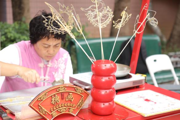 即影即得与非遗糖画两大特色环节,为邻里节注入浓厚文化气息,成为17个社区共同的“人气焦点”。即影即得摊位前,居民们三五成群合影留念,全家同框、邻里结伴的温馨画面被镜头定格,打印出的照片成为邻里相聚的珍贵纪念,大家互相欣赏照片、分享喜悦,让美好回忆在手中留存;非遗糖画摊位前始终排起长队,糖画师傅执勺为笔、以糖为墨,在铁板上勾勒出栩栩如生的花鸟鱼虫,传统技艺的独特魅力在邻里互动中代代相传,让中华优秀传统文化在潜移默化中浸润人心。