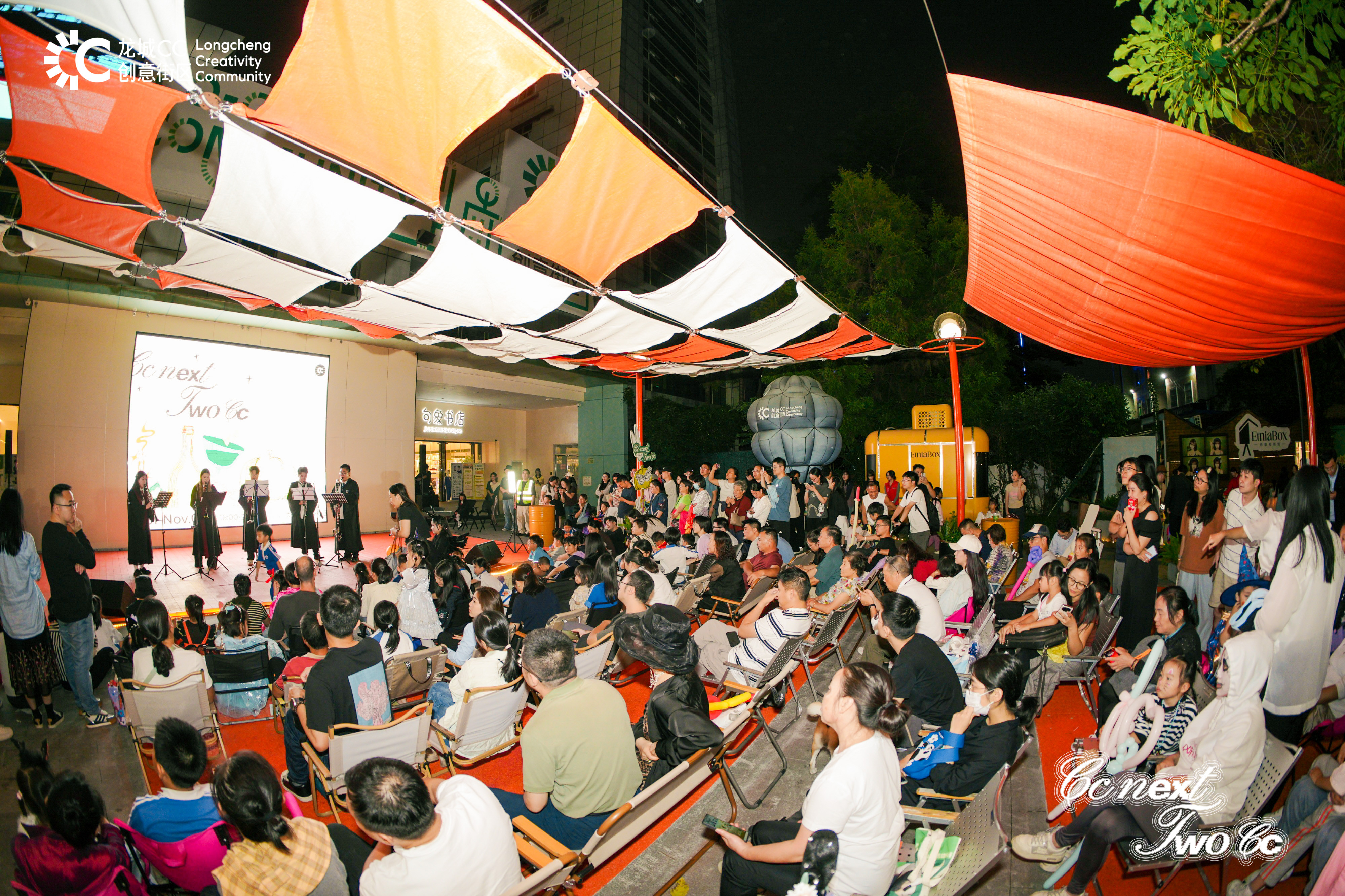 这场兼具趣味与温度的活动,正值龙城CC创意街区2周年庆,由“文明C聚场”携手香港中文大学(深圳)附属学校道远学校弦乐团、龙岗飞越彩虹合唱团共同打造,以沉浸式快闪体验点燃市民参与热情。