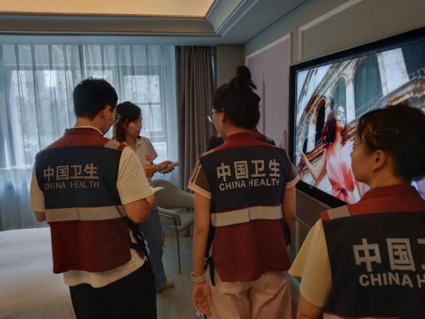 决胜阶段,园岭街道公卫中心启动赛事期间全时响应,通过“2+6”人员布防模式(2人驻守场馆、6人保障酒店及应急支援)定岗定责,并强化与区疾控、卫监所等部门联动,每日对接待酒店开展风险排查,形成“驻点+巡查”的守护闭环,确保公共卫生安全万无一失。