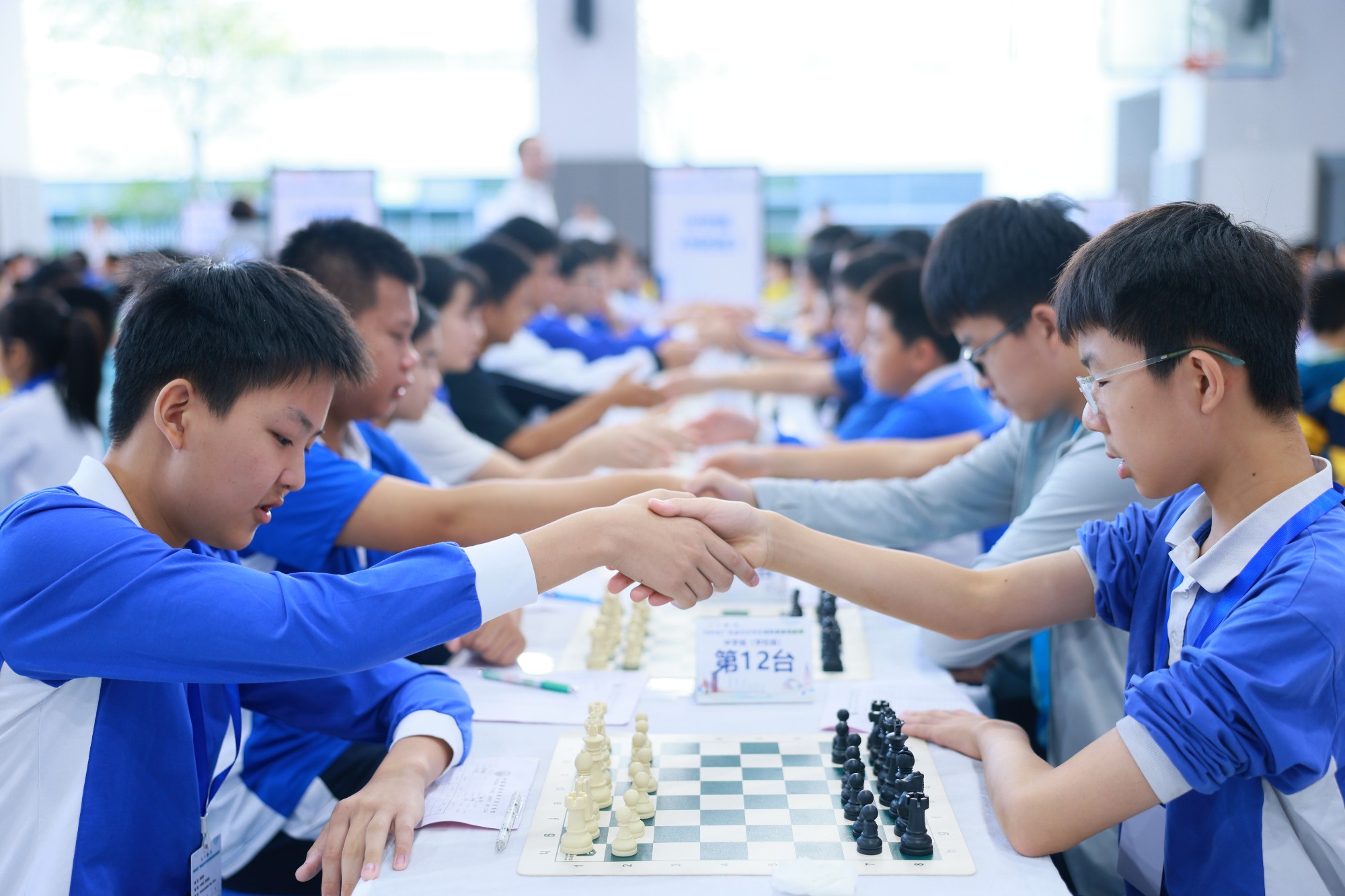 11月1日,2025年广东省中小学生国际象棋锦标赛在前海创新教育集团前湾学校开幕,来自全省22所学校和机构的600余名中小学棋手参赛。