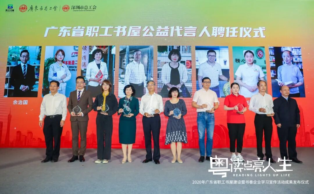 活动为广州公交集团第二公共汽车有限公司等2020年广东省十大书香企业代表授“广东省书香企业”牌,向陆建新、赵晓卉、刘家怡、唐奇、吴桂春、李毅萍、黎燕芬、余治国颁发“广东职工书屋公益代言人”聘书。