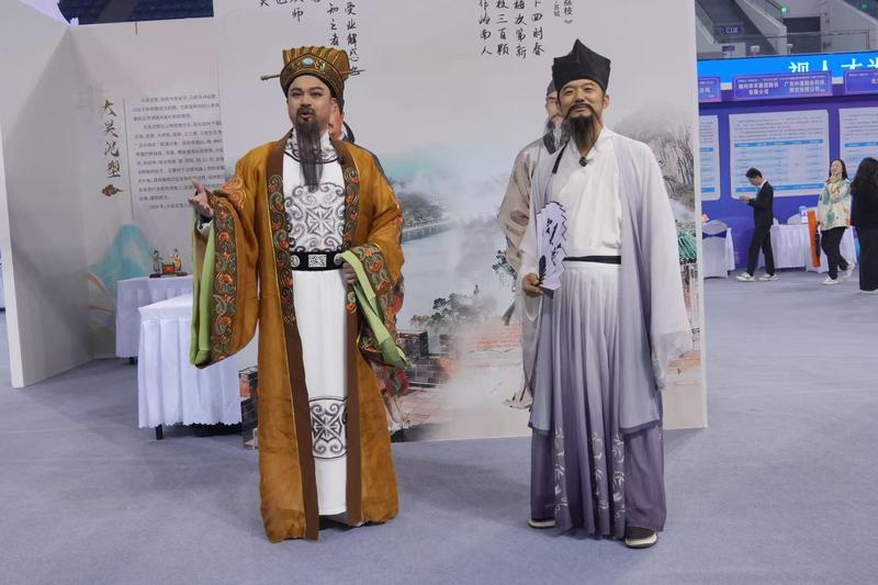活动采用“推介+招聘”模式,现场设置特色展示区,融入沉浸式体验。苏轼、韩愈两位与粤地渊源深厚的文豪IP化身“特邀HR”,为求职者推荐岗位。主办方还将潮州非遗搬至现场,通过非遗展演、功夫茶品鉴等环节,让学子在求职中感受岭南文化,体会广东对人才的重视。