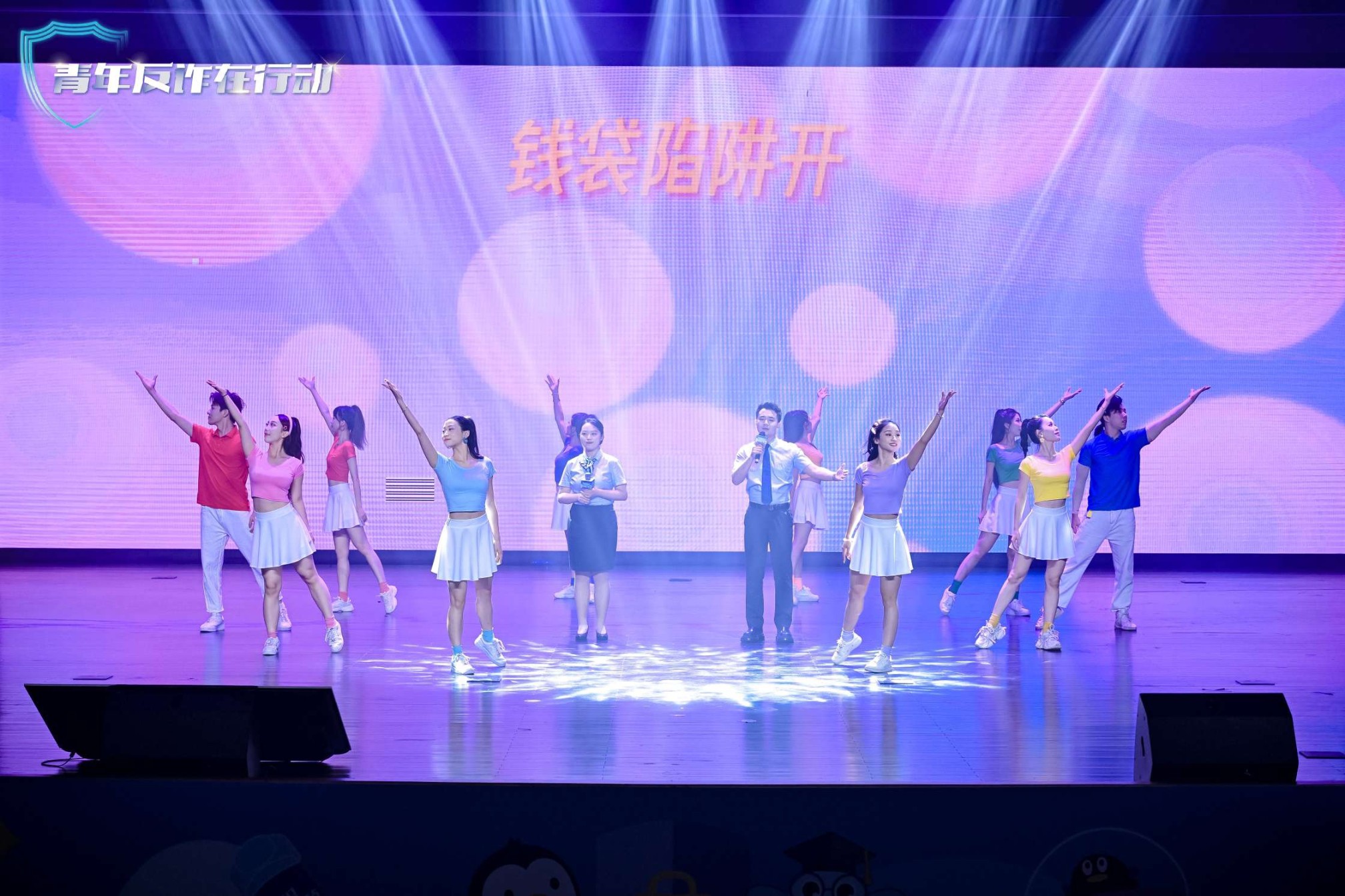 活动伊始,由农行深圳华侨城支行青年员工带来的开场舞《反诈要明白》瞬间点燃了现场热情。动感的旋律与朗朗上口的歌词,巧妙融入“兼职刷单”“低息网贷”“虚假链接”等常见诈骗陷阱。“馅饼凭啥来”“链接别乱开”“验证码守住”等歌词,化身为通俗易记的防骗口诀,深深吸引了在场学生。这种富有青春活力的艺术形式,打破了传统金融宣教的模式,让反诈知识在轻松愉快的氛围中潜移默化地传递,激发了学生们主动学习反诈知识的兴趣,为后续活动奠定了良好基础。