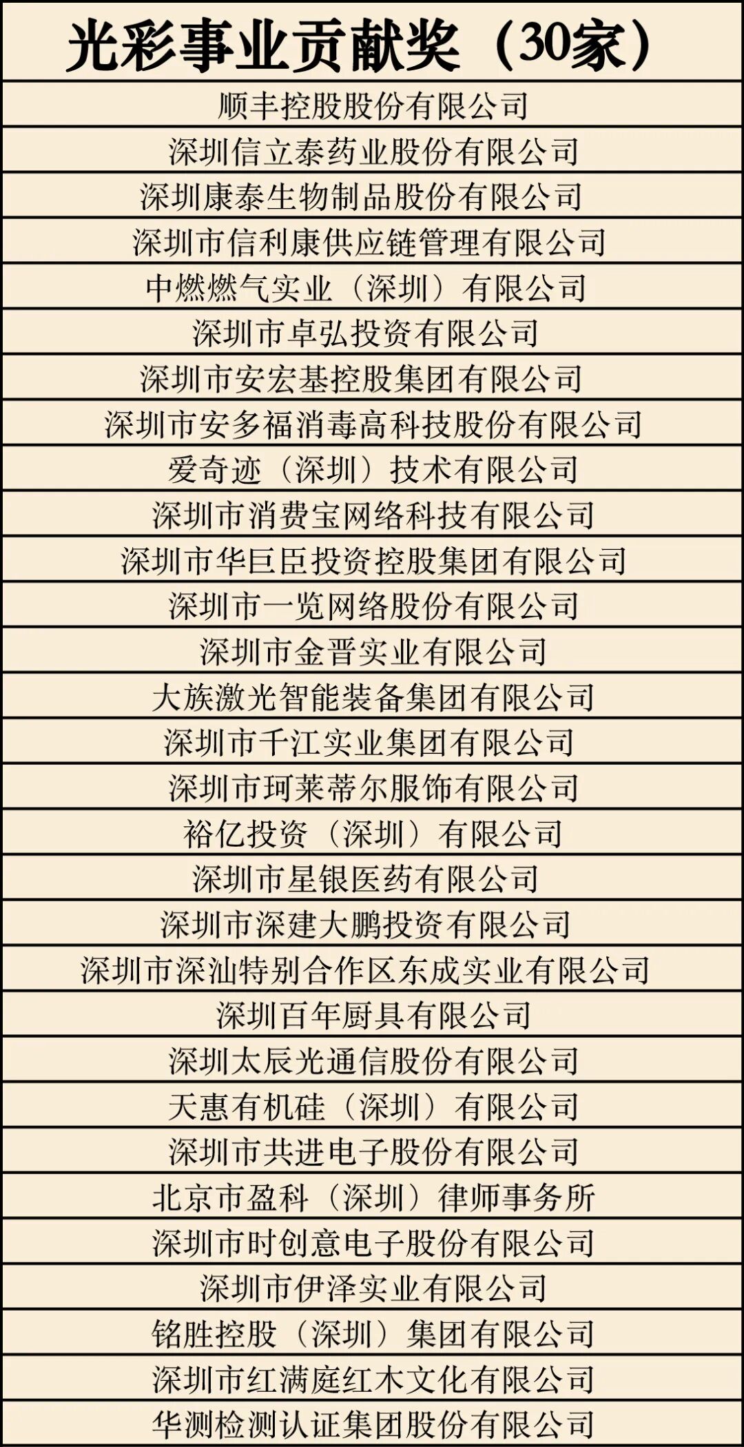 为表彰先进、树立典型,进一步激励我市广大非公有制经济人士、新的社会阶层人士和民营企业坚定做中国特色社会主义的建设者、中国式现代化的促进者,更加积极投身光彩事业,市委、市政府决定,授予丁强强等60人“深圳市非公有制经济人士优秀中国特色社会主义事业建设者”称号,授予顺丰控股股份有限公司等30家企业“深圳市光彩事业贡献奖”。