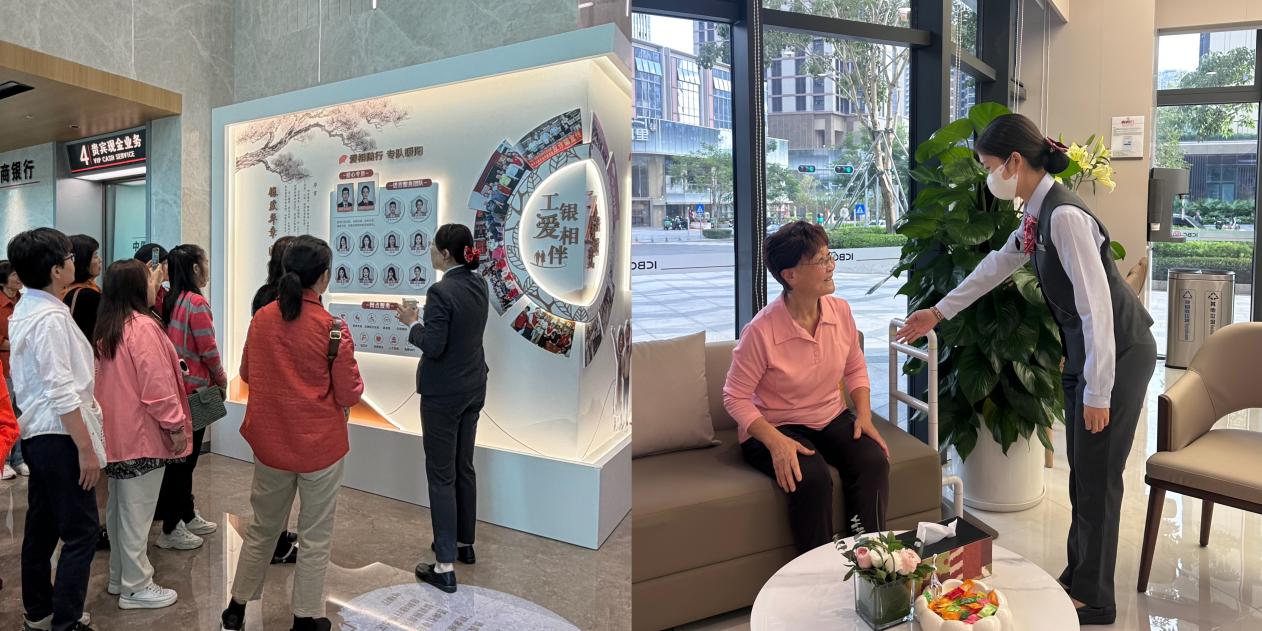 重阳节前夕,在深圳工商银行大厦内,这份适老关怀更添新意。近40位精神矍铄的工行退休员工受邀参加“情暖重阳·工银新貌”参观体验活动,沉浸式体验了焕然一新的营业大厅及智慧服务区域。